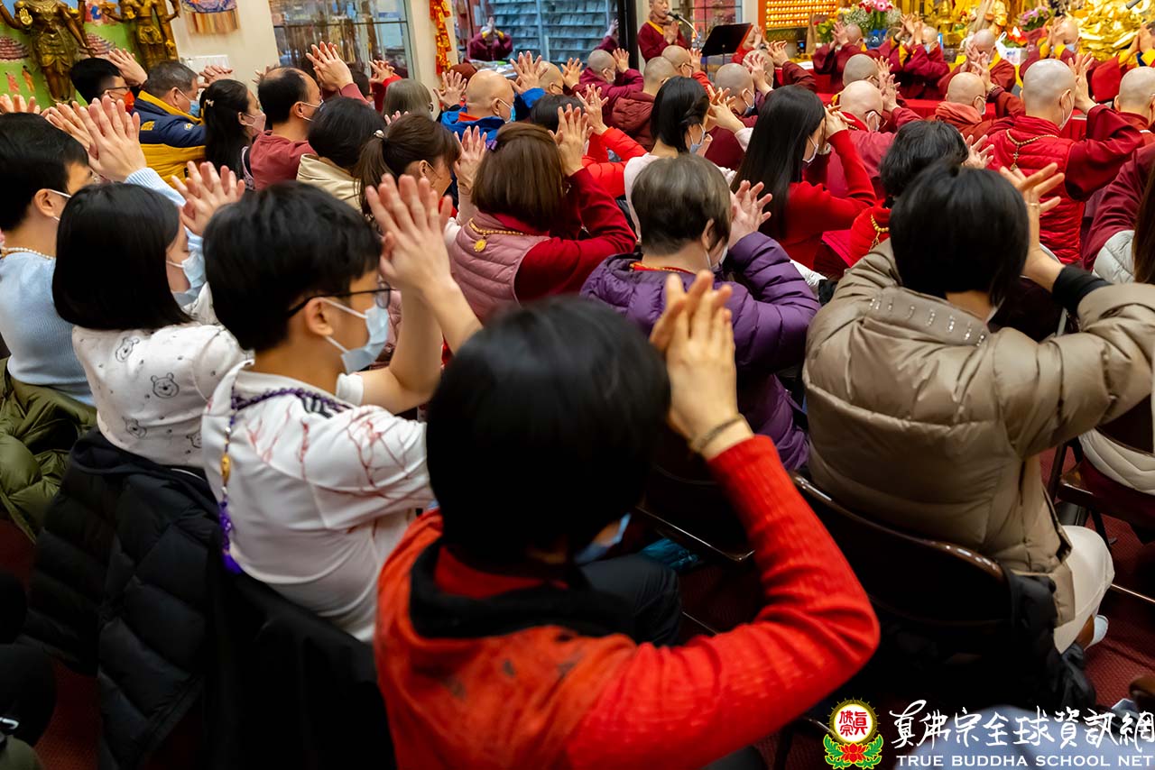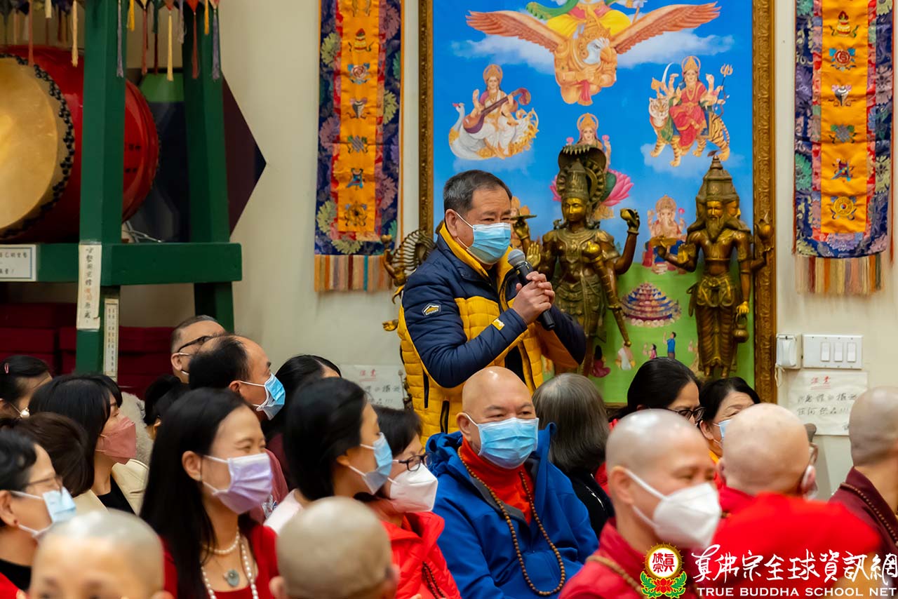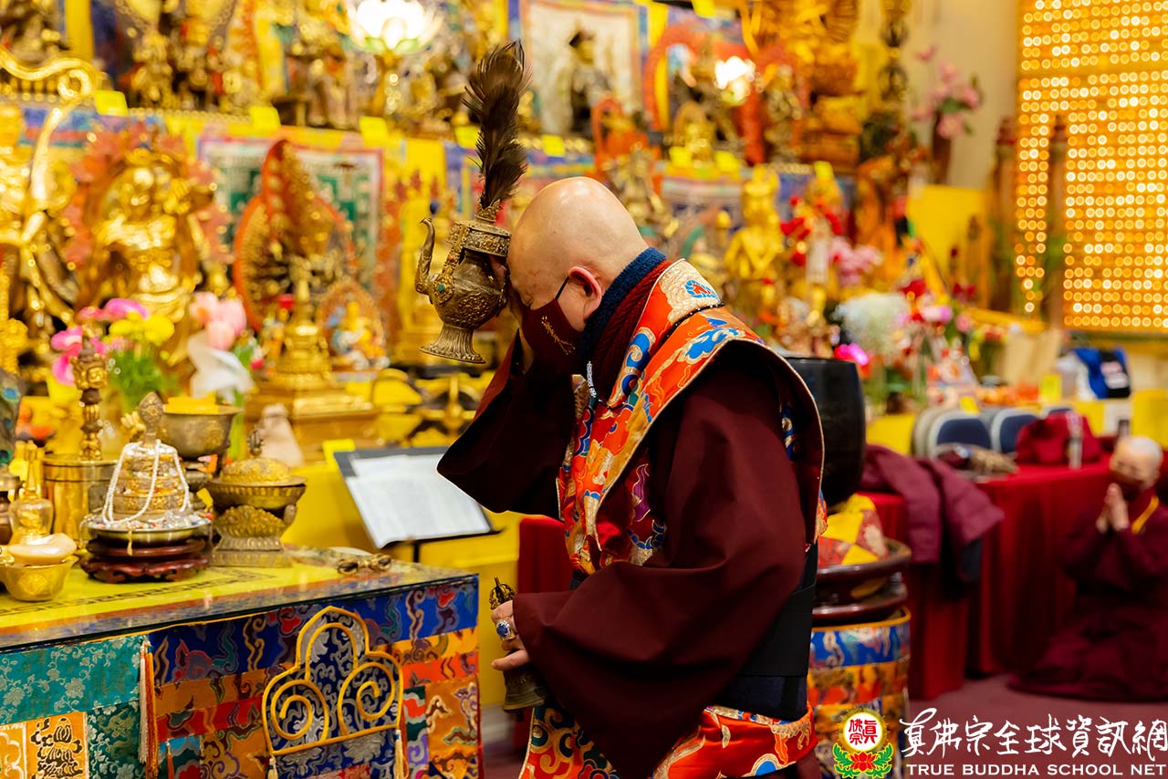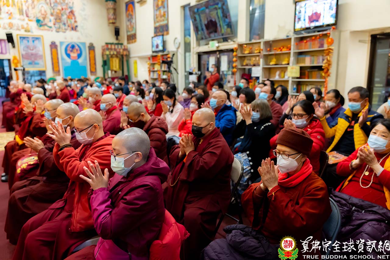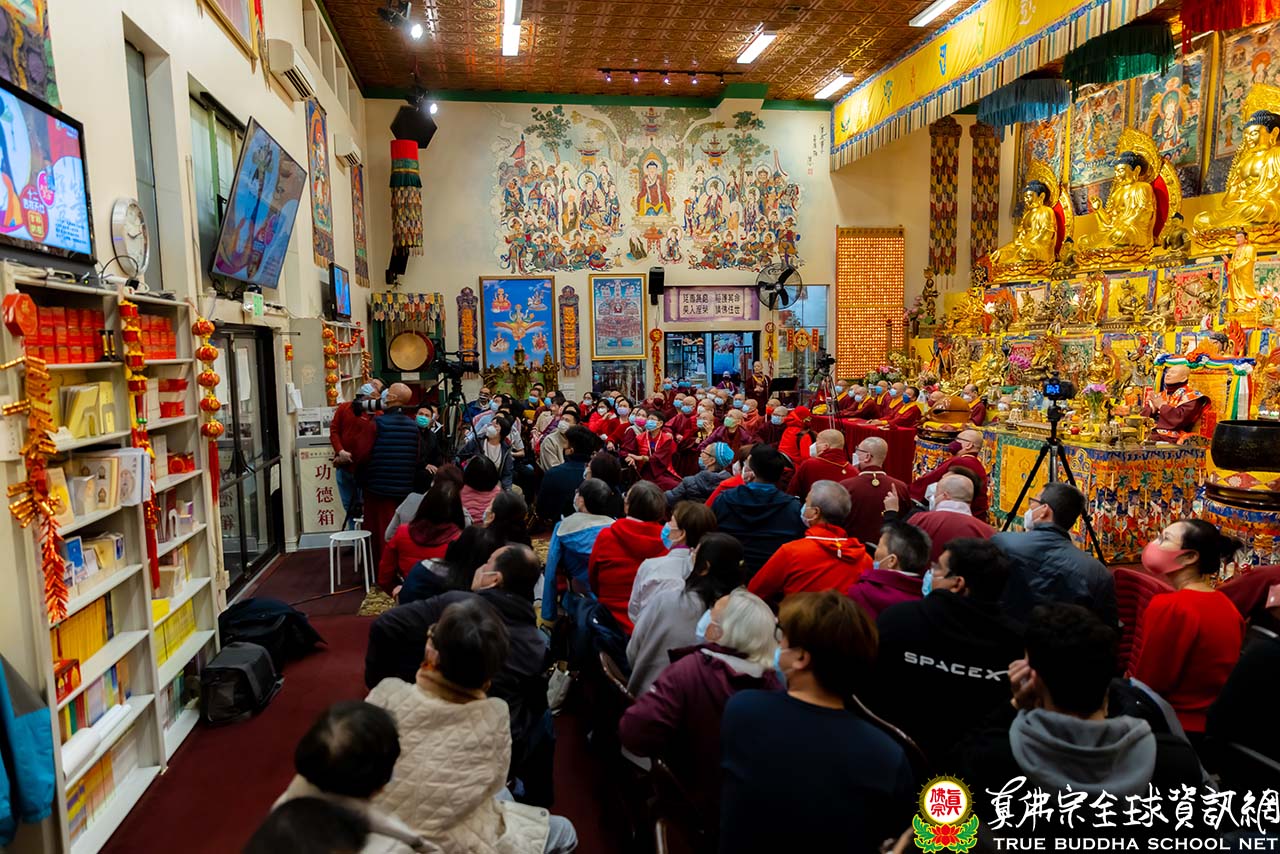 2022年4月16日,聖尊蓮生活佛盧勝彥於西雅圖雷藏寺帶領大眾同修蓮華生大士本尊法。今天非常熱鬧,來自世界各地的眾多善信紛紛聚集到祖廟來,同沾法喜、共沐佛恩。