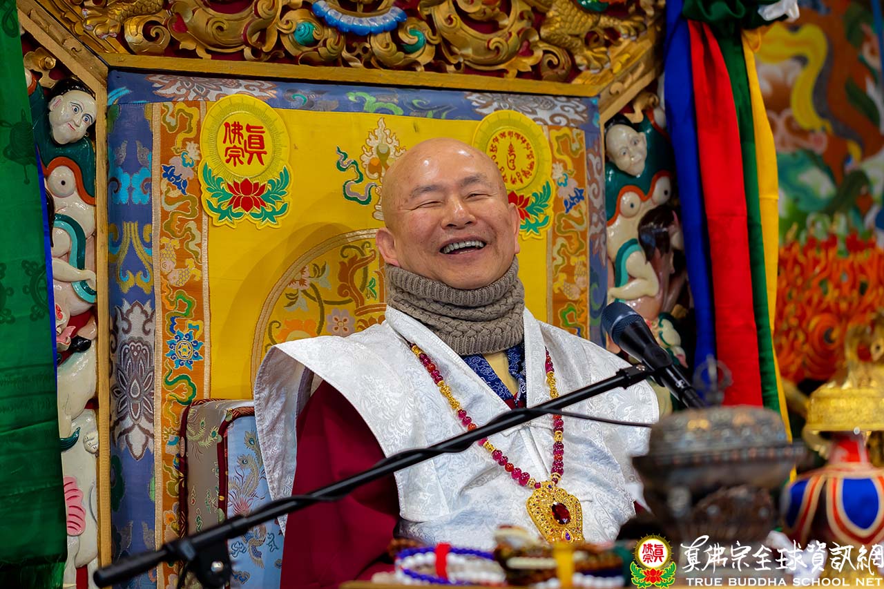 在互動環節,有弟子來函問關於師尊的書籍中提及的:抓一把沙土、念21遍佛頂尊勝陀羅尼咒,撒在墳墓上面,往生者就得以往生佛國淨土。這位弟子的母親生病,她也是真佛宗弟子,可是這幾年長期臥病在床(患有失智症及其他毛病)。這位弟子想知道如果這個方法改成:抓一把米念21遍佛頂尊勝陀羅尼咒,撒在母親四周,是不是也可以讓母親的冤親債主、纏身靈離開母親,減輕母親的孽障,讓她少受罪。這位弟子希望可以減輕母親的苦痛,讓她早日康復。並且也每天都有在修持煙供法迴向給家人。祈求師尊慈悲開示這個尊勝佛母陀羅尼的方法,不知這樣做是否如法。