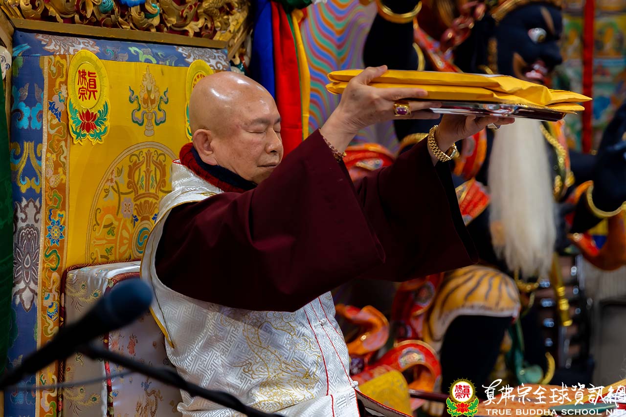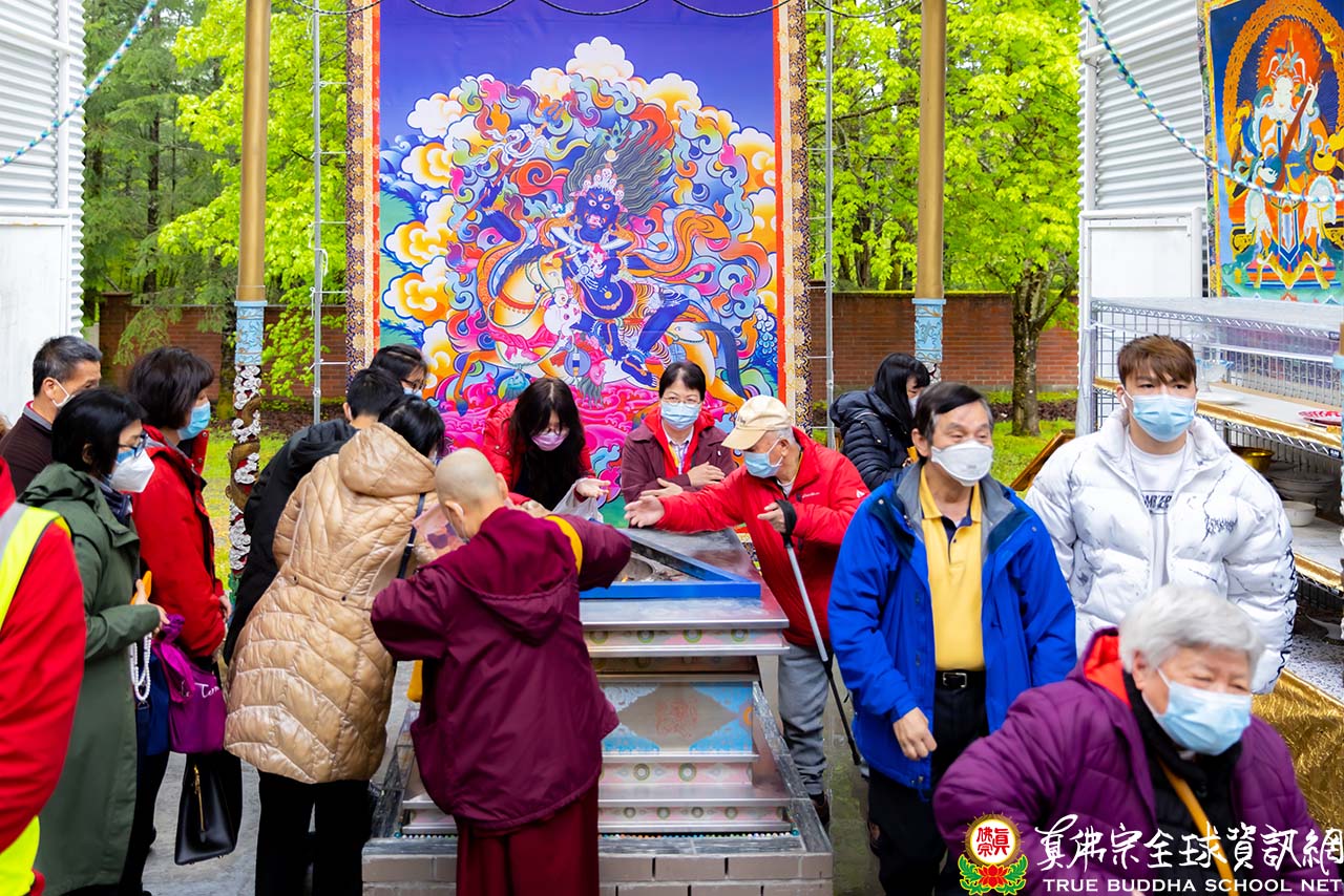 法王開示完畢,也象徵著大吉祥天女護摩法會的圓滿結束。禮拜壇城後,法王與眾多線上弟子揮手祝福,眾等無不歡喜感恩!法王賜授在場弟子大吉祥天女灌頂,法會圓滿結束。