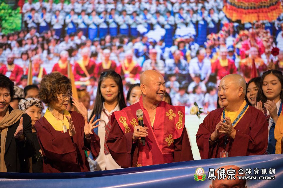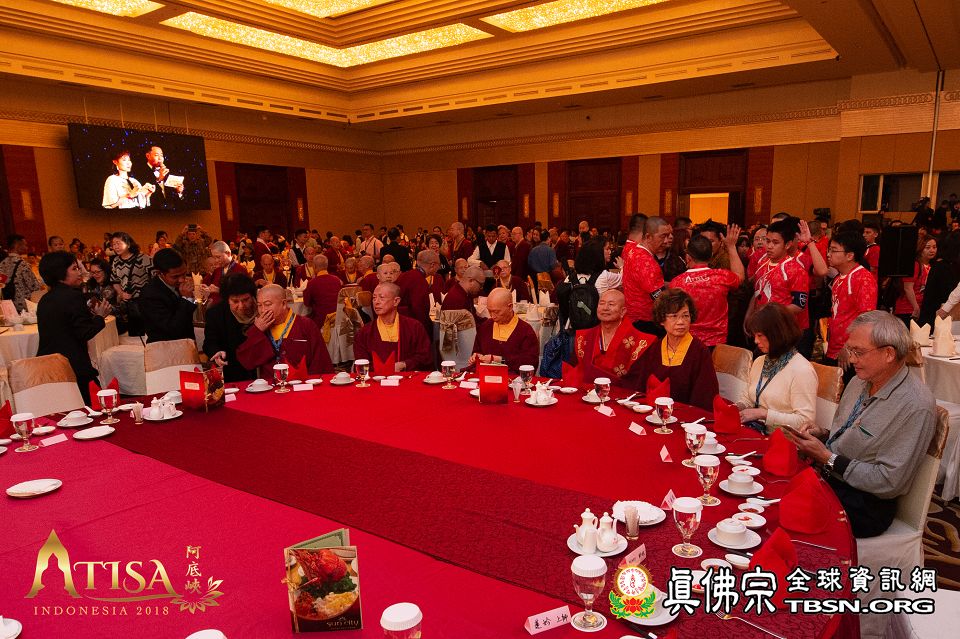 最後,聖尊應邀致詞,聖尊感謝今天晚上的主辦單位、也感謝華光印尼敬德學校。聖尊稱讚他們唱歌都非常好聽,並表示佛教學校在印尼能夠成功,真是不容易。聖尊希望這所學校的精神能夠發揚全世界。聖尊覺得敬德學校的學生人人精神煥發、充滿朝氣,他今天晚上看到這一幕,非常感動。最後,聖尊再次謝謝華光印尼敬德學校,其校長與老師承辦此學校,非常好。