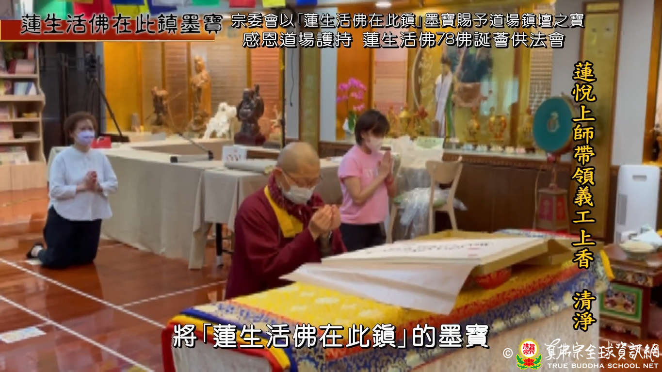 宗委會感恩聖尊蓮生活佛在法會前給予所有聯辦法會的道場一一的加持!感恩聖尊以「蓮生活佛在此鎮」墨寶賜福所有參加的道場,令大家深深感懷聖尊的加持力!