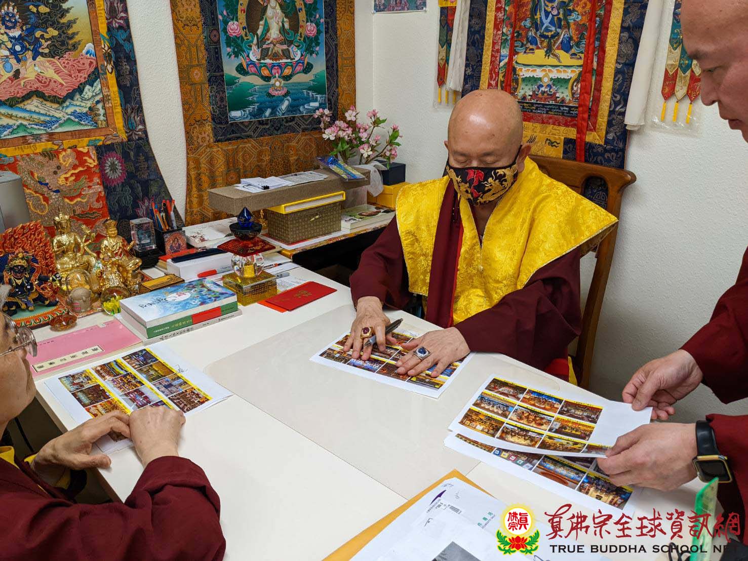 宗委會也特別向網路技術組致謝,謝謝蓮花惠啟、蓮花清華及蓮花炳祥,在短短幾天內為百多座道場測試zoom畫面!並感謝TBSN的四人小組,負責文宣、整理法會資料、聯絡工作、服務道場、收集整理照片與法會資料名單等、發佈消息、籌辦薈供主題壇城比賽等所有事宜!