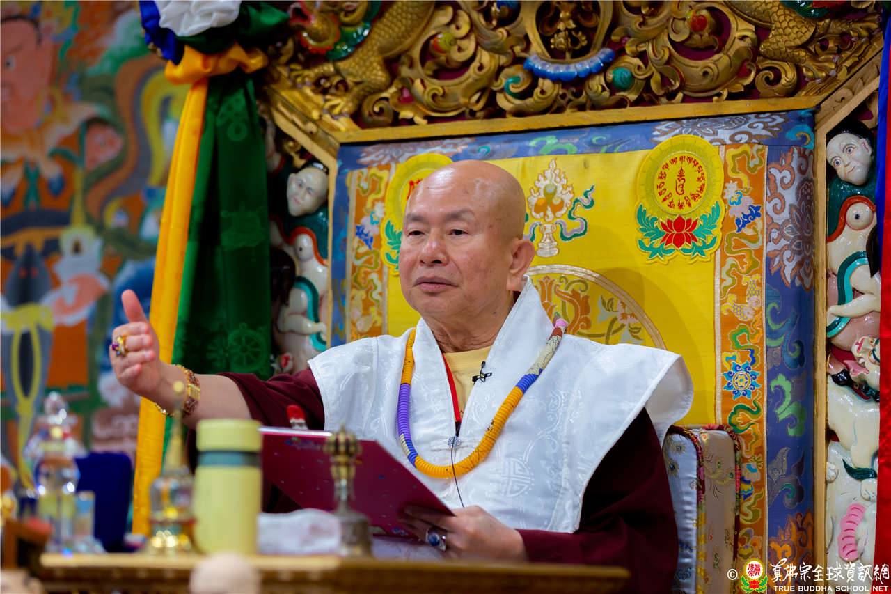 菩薩的四無畏,就是以上四點。法王語重心長的告誡弟子們要守戒,精進及懂得感恩。聖尊的法語讓弟子們深思反省,法味濃濃。法會後聖尊與Zoom線上的弟子們揮手告別,但願不久的將來就是重逢的季節。最後法王為現場的弟子們做了觀世音菩薩法灌頂,法會就此圓滿落幕。