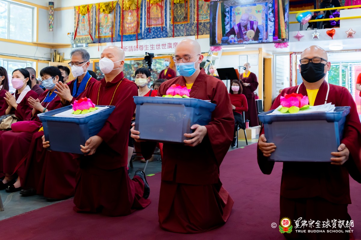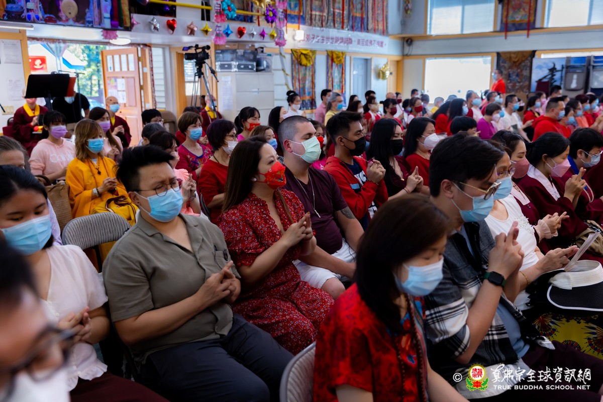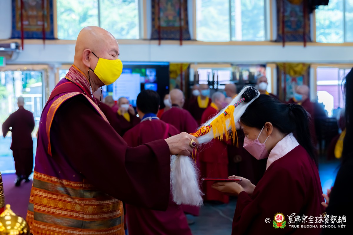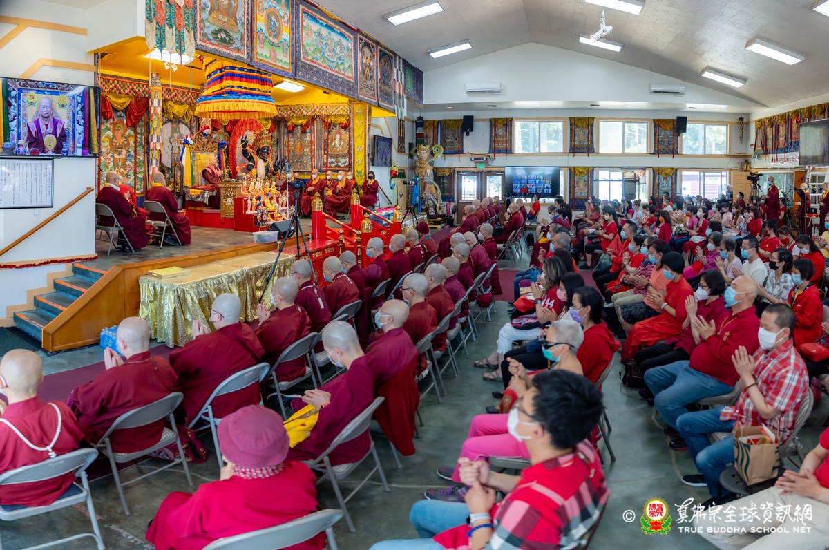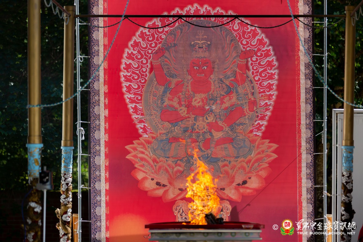 開示結束後,法王帶領大眾頂禮壇城,然後與Zoom雲端的弟子溫馨道別。接著,法王給現場與會大眾賜授「愛染明王法」灌頂,殊勝的愛染明王護摩法會在灌頂結束後也圓滿落幕。