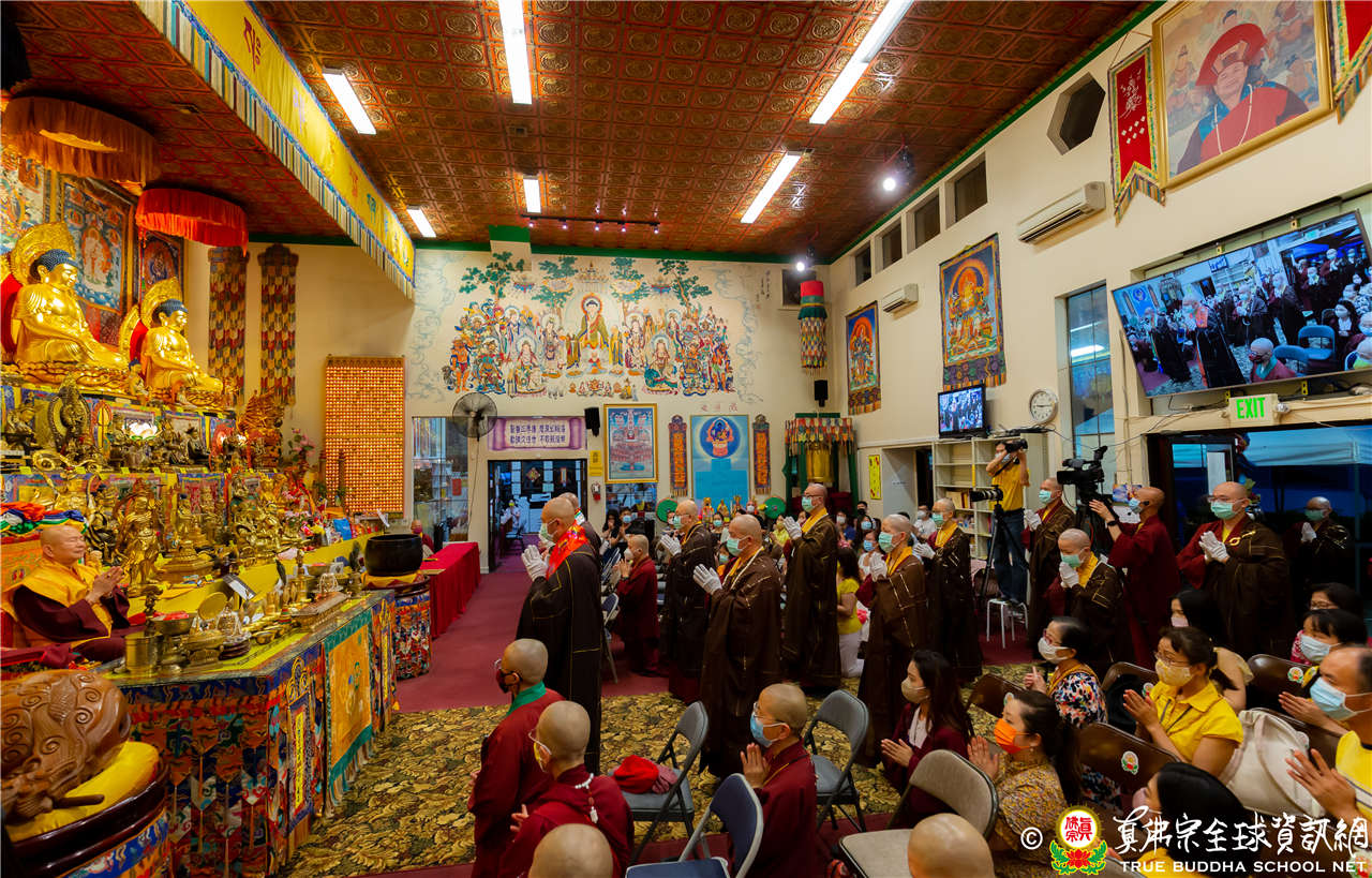 同修結束後,舉行西雅圖雷藏寺與彩虹雷藏寺的聯合請法儀式,眾上師及法師以最莊嚴肅穆的恭敬心,祈請聖尊蓮生活佛主持2022年8月20日西雅圖雷藏寺壬寅年阿彌陀佛息災祈福暨千艘法船接引超度大法會,及8月21日彩虹雷藏寺瑤池金母護摩大法會,透過無遠弗屆的全球直播,大眾共同虔敬祈請,並感恩聖尊以無盡的菩提心力,慈悲威神之力主持這二場大法會,佛光注照眾等息災祈福,並超度祖先等眾靈往生西方極樂世界。