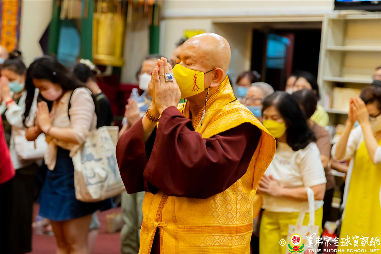 雖然氣候炎熱,諸多同門仍滿懷著孺慕之情,遠自世界各國絡繹不絕的前來拜謁聖尊蓮生活佛盧勝彥。隨著蓮花童子的咒音響起,眾弟子們恭迎聖尊蓮生活佛佛駕蒞臨大殿帶領今晚的準提佛母本尊法同修。