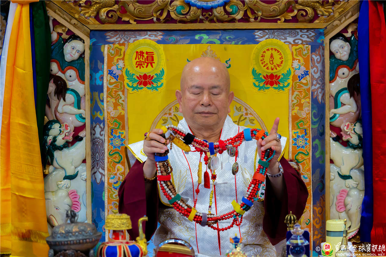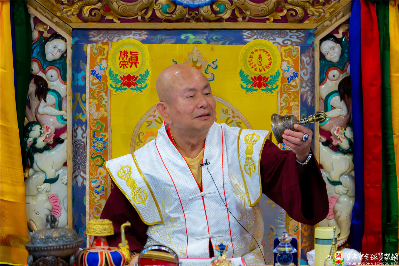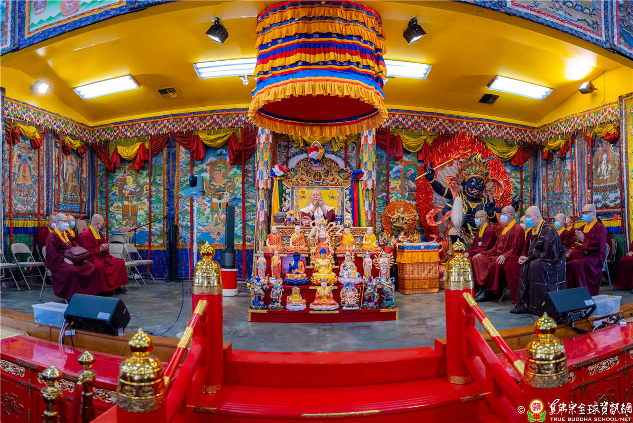 最後法王移駕到Zoom前與弟子們互動,弟子們誠摯地感恩法王開示,法王慈悲加持祝福現場及網路上所有弟子都能得到「不空羂索觀音」加持護佑,眾現場弟子接受法王的「不空羂索觀音」灌頂,法會圓滿結束。