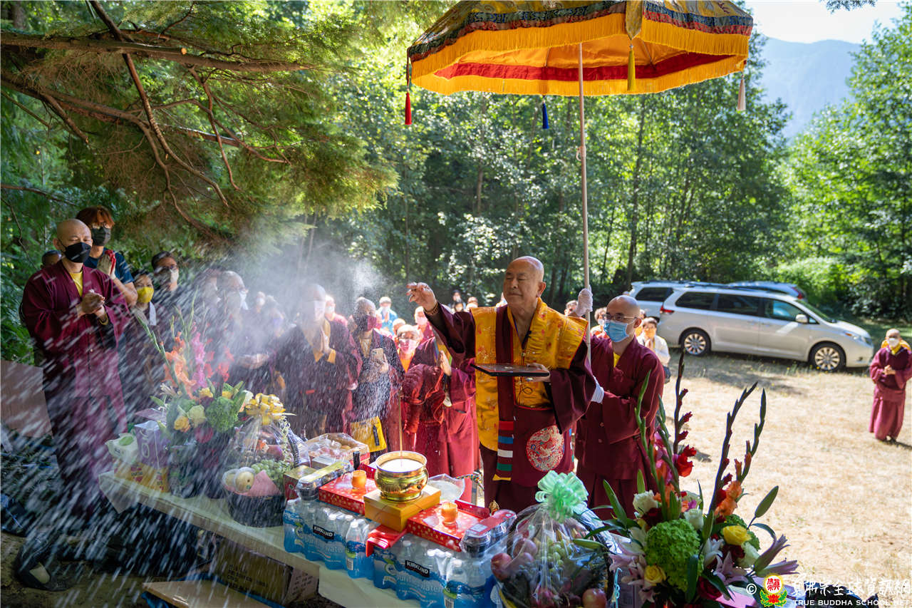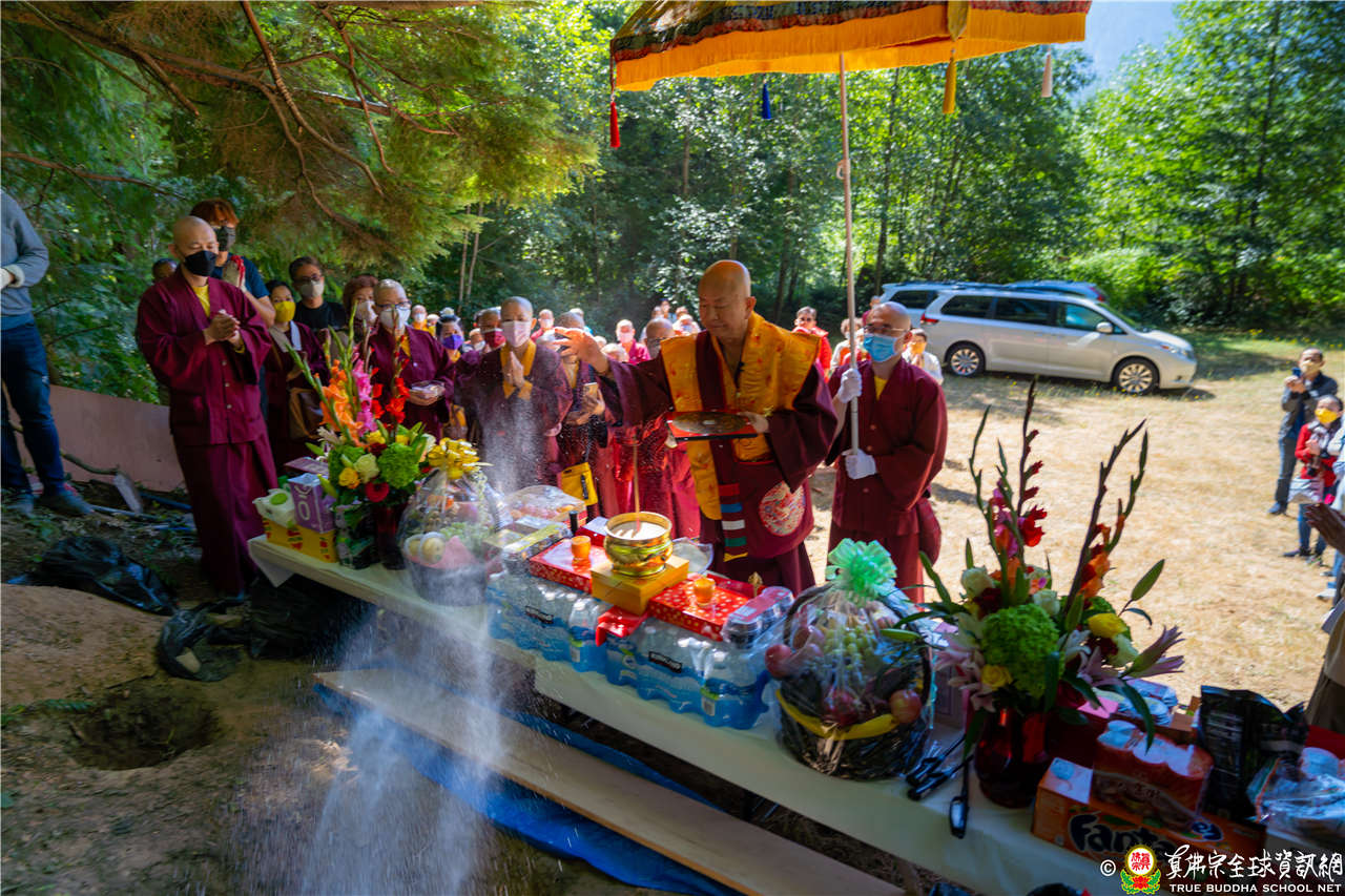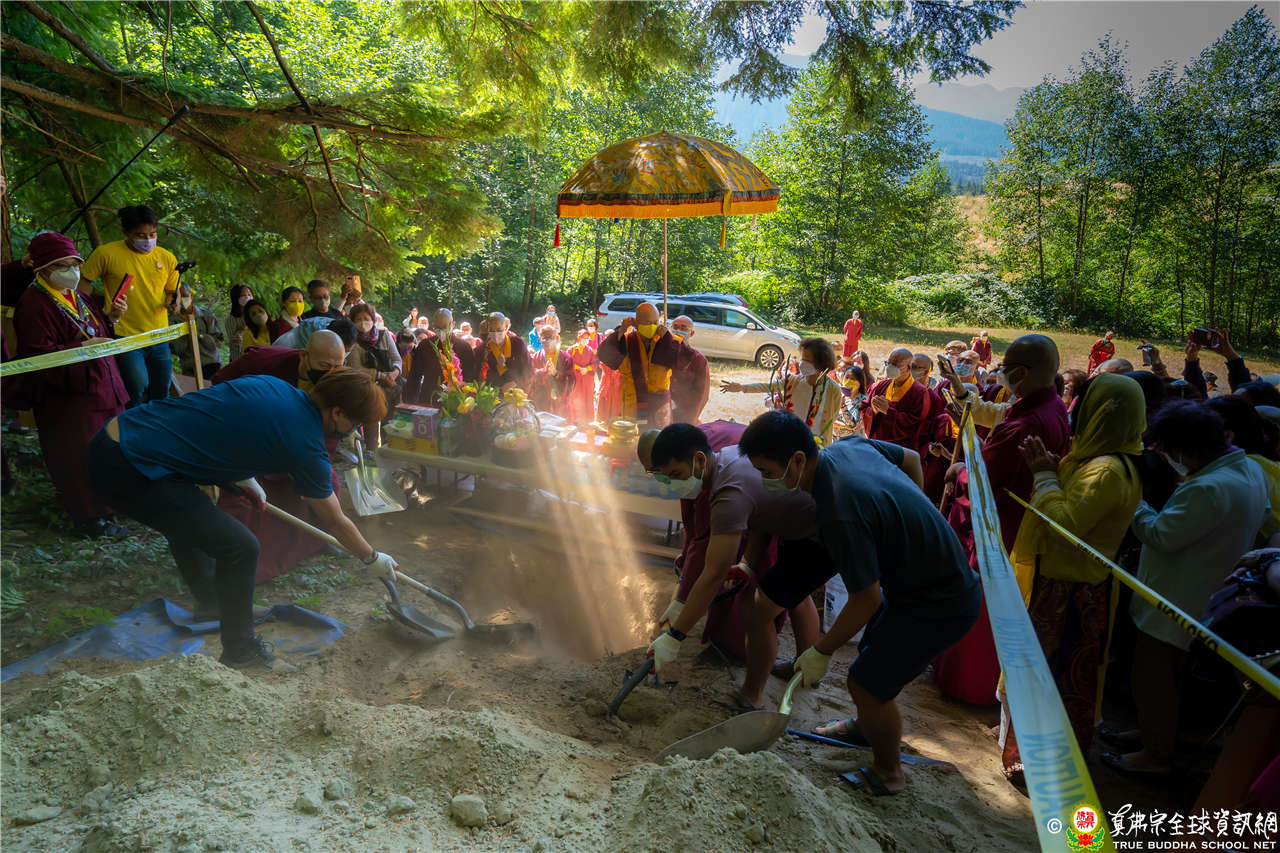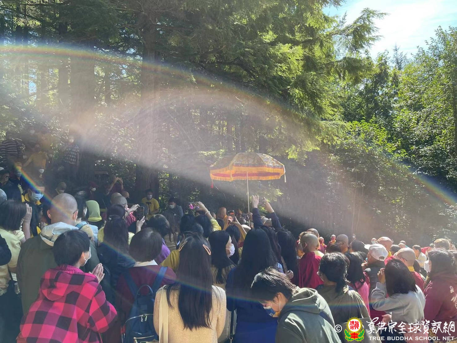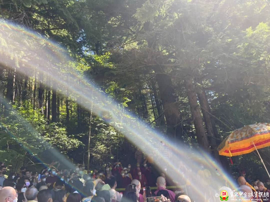 2022年8月28日蓮生活佛於美國西雅圖彩虹雷藏寺師尊主持生基儀式,多位真佛宗同門拍到放光照片!