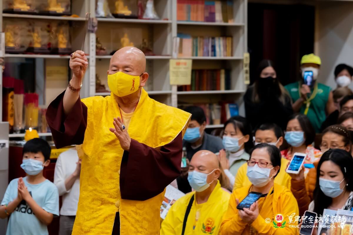 在精闢寶貴的法語開示結束後,聖尊慈悲為新皈依弟子做皈依灌頂並加持大悲咒水、開光佛像、加持眾弟子。圓滿結束了今晚的同修活動。