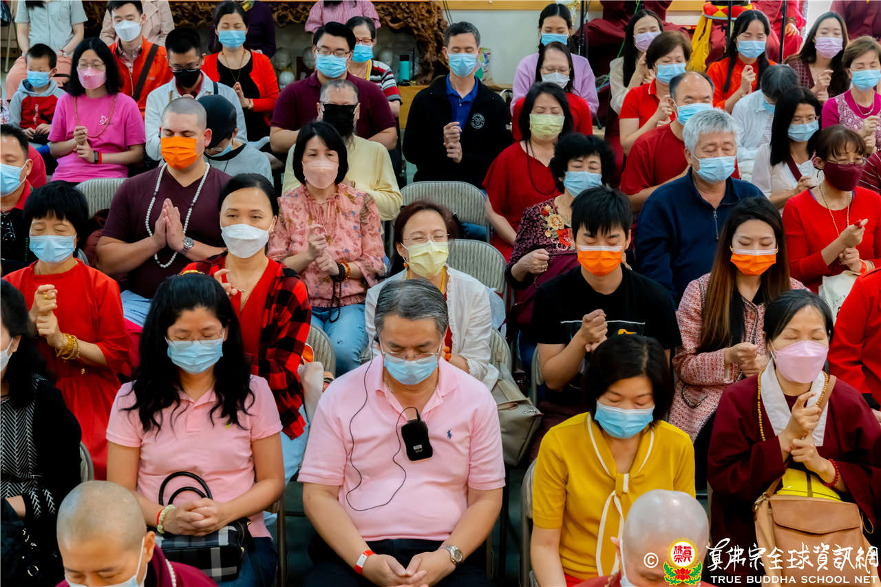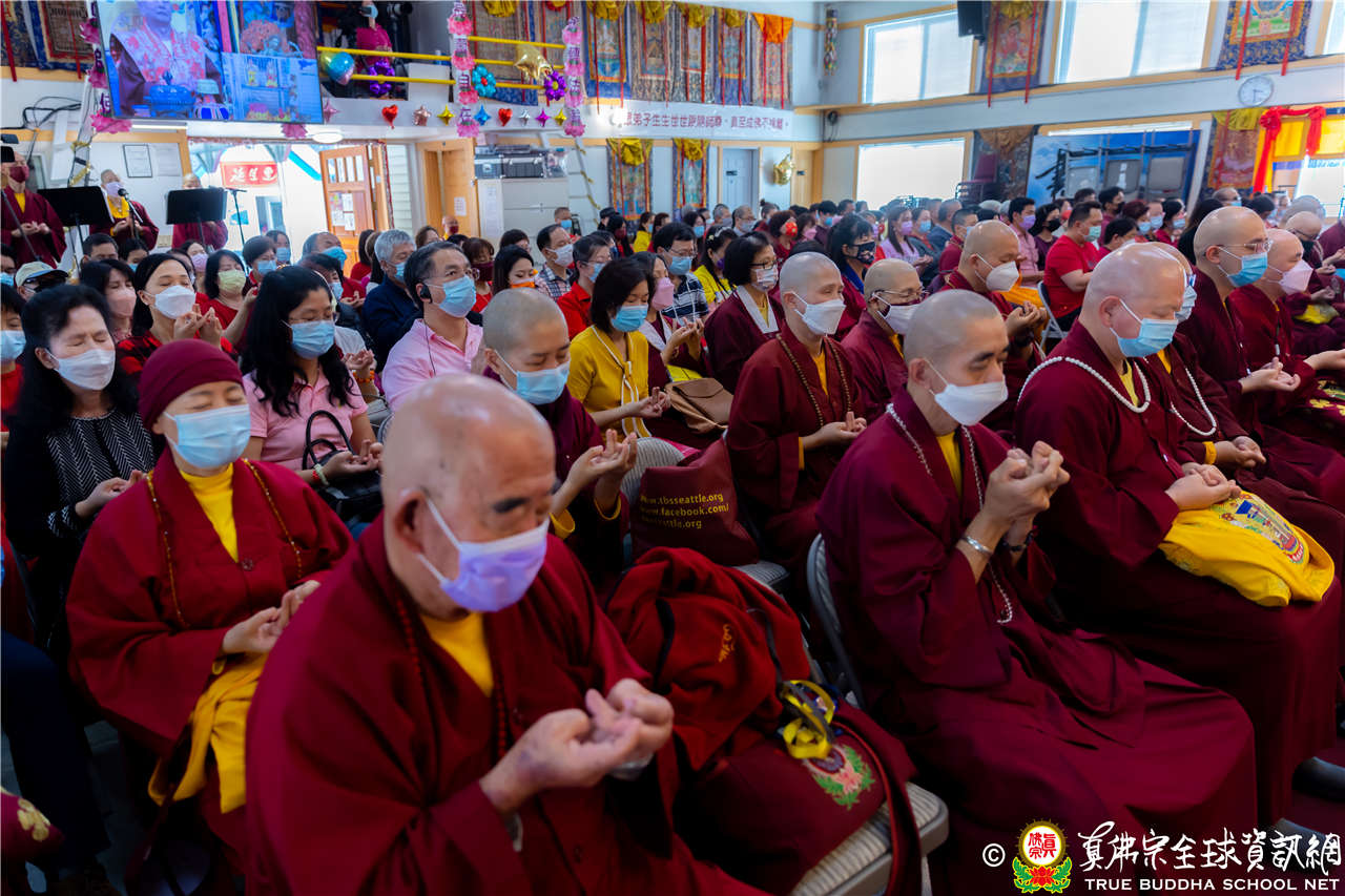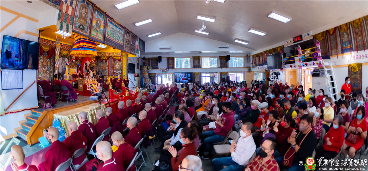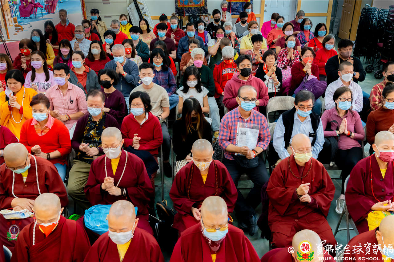 最後法王移駕到Zoom前與弟子們互動,弟子們誠摯地感恩師尊開示,並紛紛在鏡頭前感謝法王,法王慈悲加持祝福現場及網路上所有弟子,現場眾弟子接受法王的「勾財天女」灌頂,法會圓滿結束。