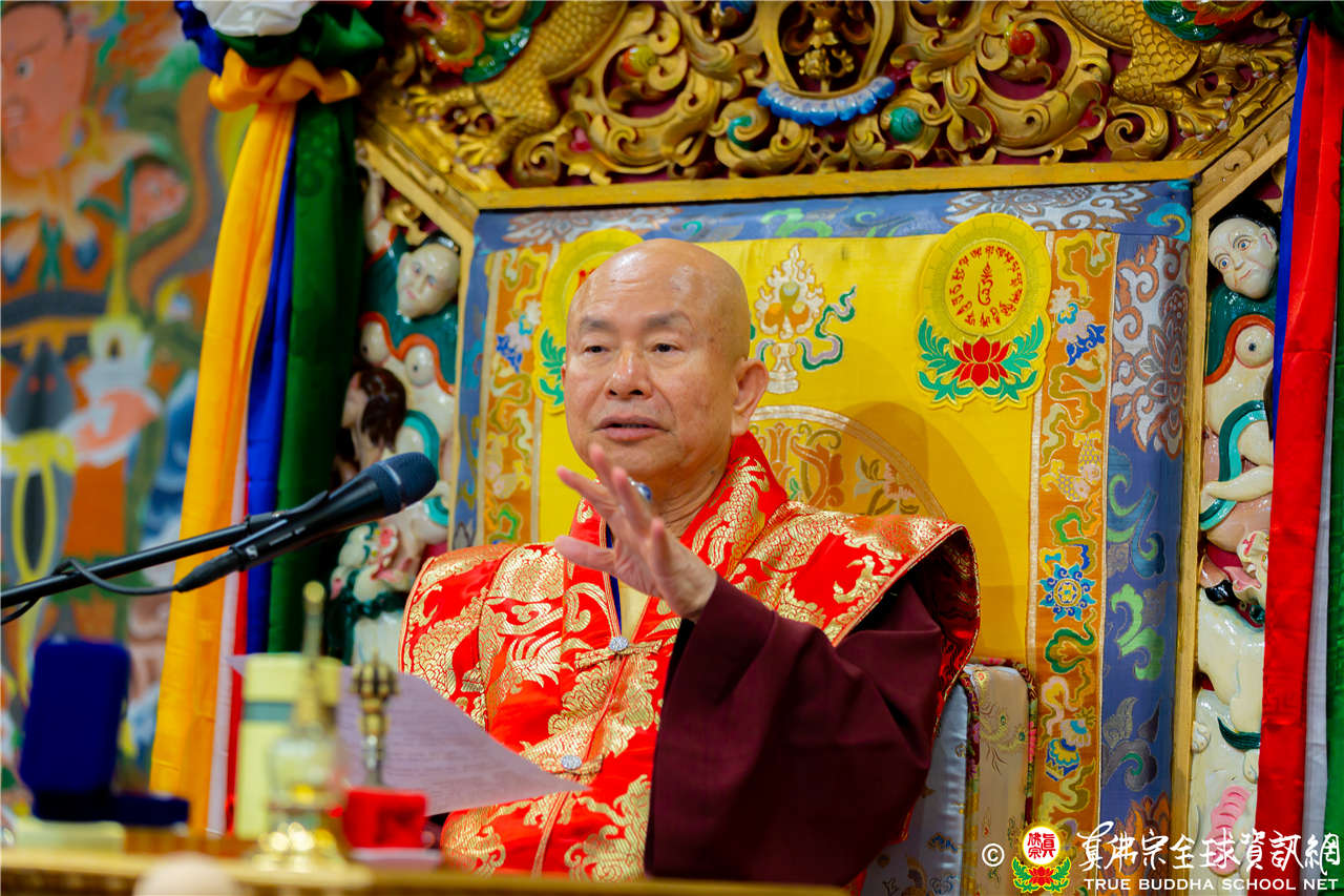 「師尊在真佛宗傳授許多法,弟子若能將法聚集起來,也能受用自我解脫,而非只是馬耳東風,遇到任何問題都能運用方法解決,就是寶積菩薩。」法王說明大菩薩得到很多的法也有用到,真實有受用,能將法寶集在一起也能應用就是寶積菩薩。佛陀有三個法印:諸行無常、諸法無我、寂靜涅槃,也是教導我們看清世間一切變化,應該無我為正覺法寶,讓身心意清淨得到寂靜涅槃。