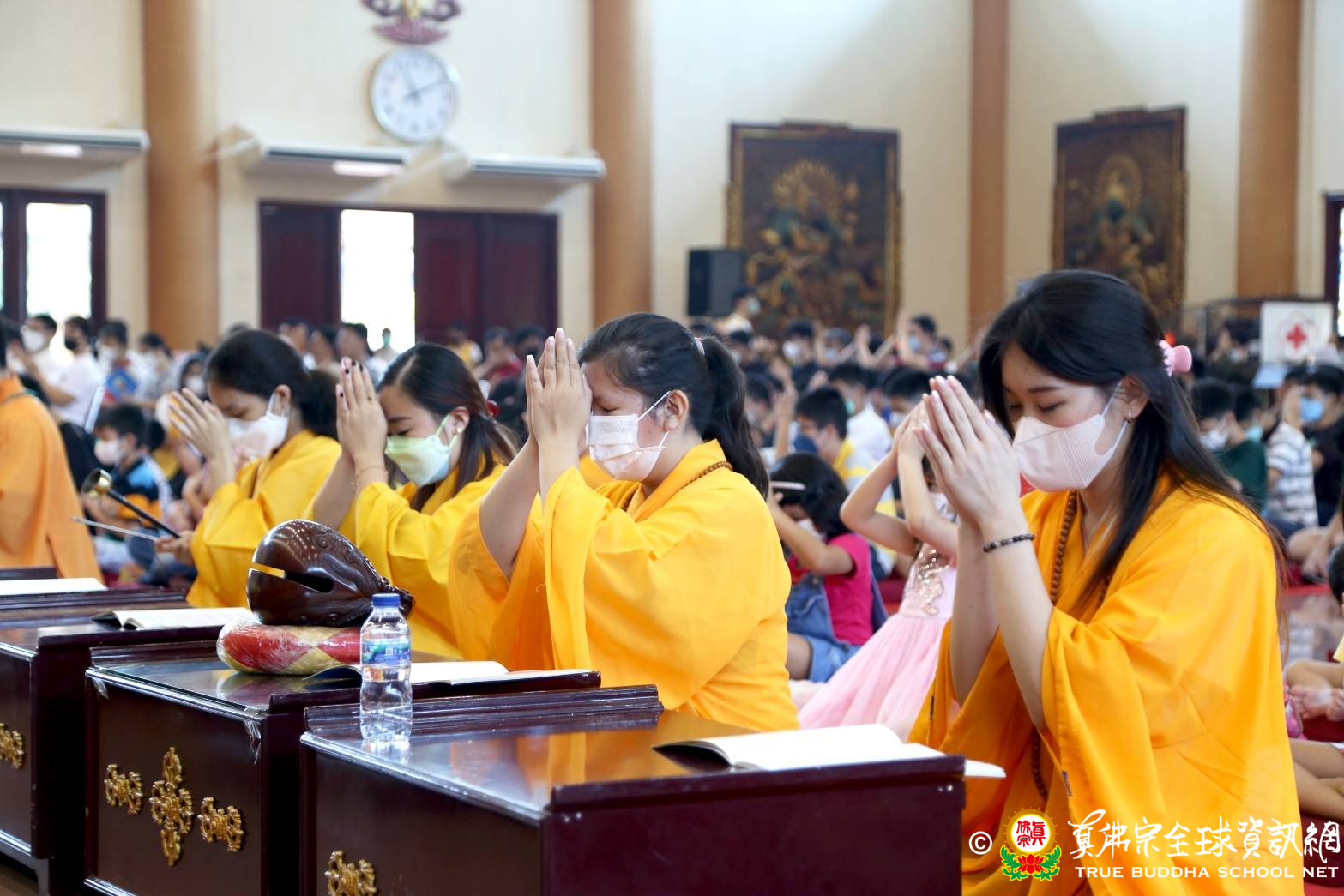 2022年10月16日印尼雷藏寺大殿聚集了青少年班真佛弟子,這是疫情緩解後第一次大活動,從小學到初中,再加上來寺裡共修的信眾,把真佛殿坐得滿滿的,只為了參加供僧大會。