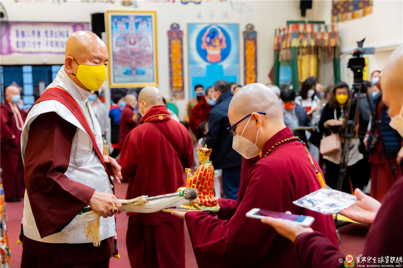 精彩寶貴的法語開示後,聖尊慈悲賜授新同門皈依灌頂,加持大悲咒水,及開光佛像,並以佛塵一一加持眾人。同修吉祥圓滿!