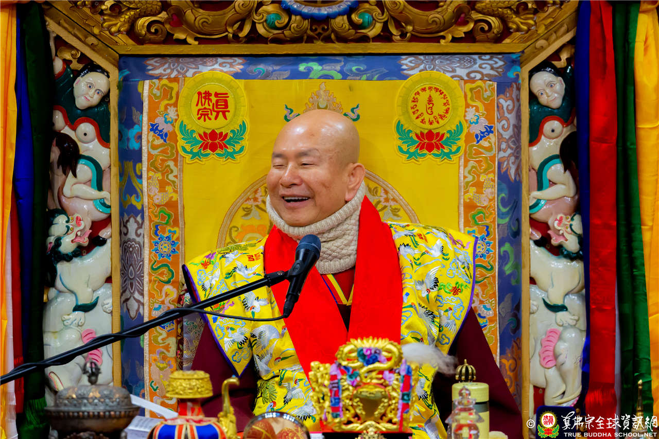法王也讚歎十方同修會供養的天女型瑤池金母雕刻得非常美麗細緻、年輕莊嚴。每次頂禮祂時都除了感到莫名感動,同時也肅然起敬,仔細一看彷彿變成活的。法王曾說若無瑤池金母,就沒有盧師尊,也不會有真佛宗,大家也不會在這裡。因此,真佛宗與瑤池金母緣份甚深。同時,法王表示因即將返回台灣,這次是今年在彩虹雷藏寺的最後一場佛法開示。