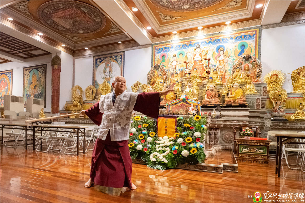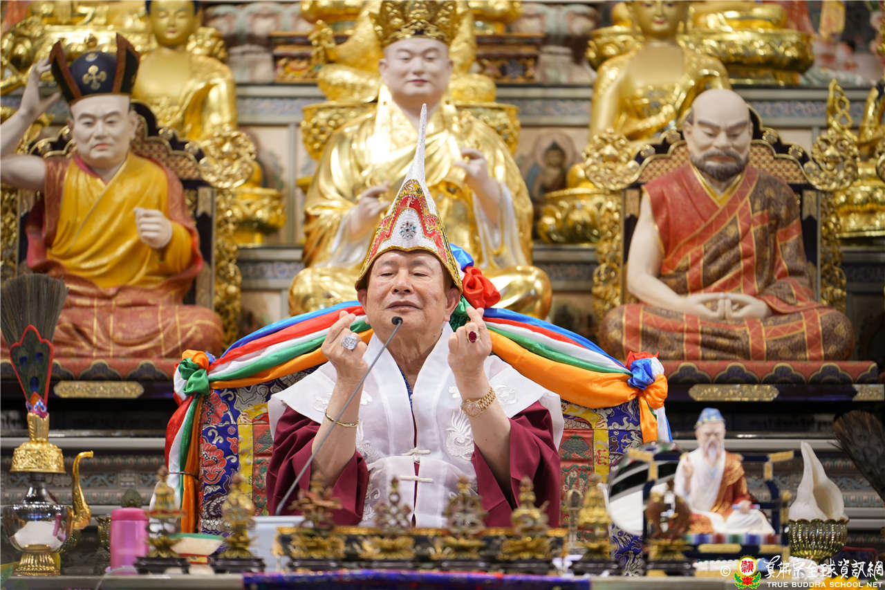 法王答:「剛剛講過了True Buddha School是第一名的學校,師尊也讓大家像孔子周遊列國,到處多聽多比較。想修淨土宗讓西方三聖來接引到西方佛國淨土,到淨土再修真佛密法也很好;想修法相唯識宗,修到無垢識也等同密教的庵摩羅識;修行中觀也有很多派系(天臺宗、中觀應成派、三論宗),多聽聞就會了解密教本身就是中觀,密教龍樹菩薩就是講中觀。密宗包含中觀、唯識、還有因明(佛教邏輯學和認識論),真佛宗非常圓融,可以跑天下多聞,將來到佛國淨土還是要修真佛密法。」