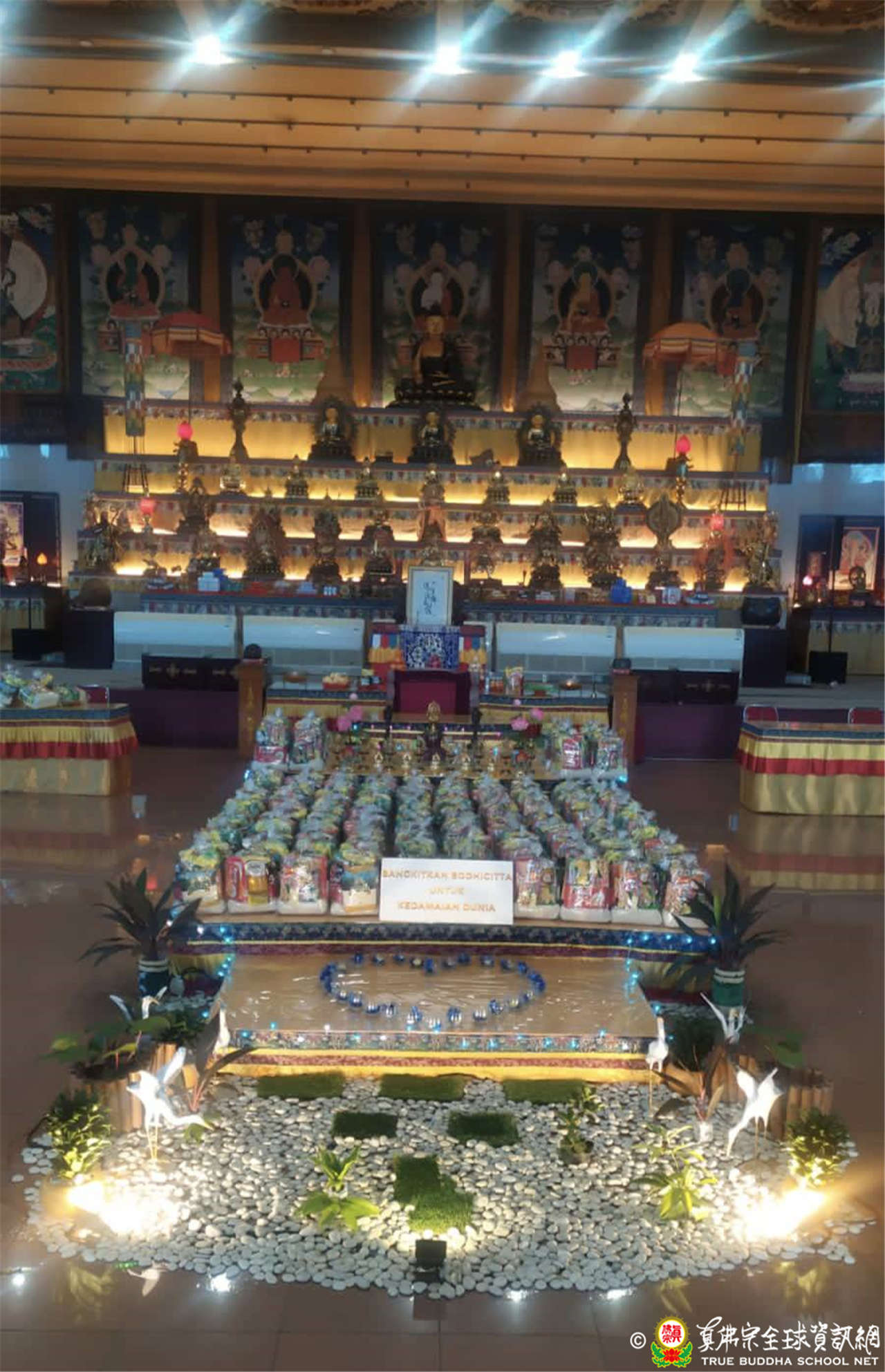 參與的道場並以愛心圖案點燈為世界祈福,希望這份愛心與咒力,讓這世界有多一點光明、驅散黑暗。秉持著真佛宗根本傳承上師教導的菩提大愛,宇宙的大光明海與燈火互相交融、真佛宗同門以共同的念力同修,咒音遍佈了全球角落。