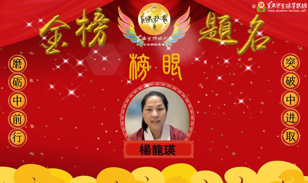 最後由教育處長蓮訶上師頒發狀元、榜眼、探花獎,探花:陳庥磬助教、胡懿丹助教。榜眼:楊龍瑛助教。狀元:張麗樺助教、王麗麗助教。5位獲獎者並一一發表獲獎感言。