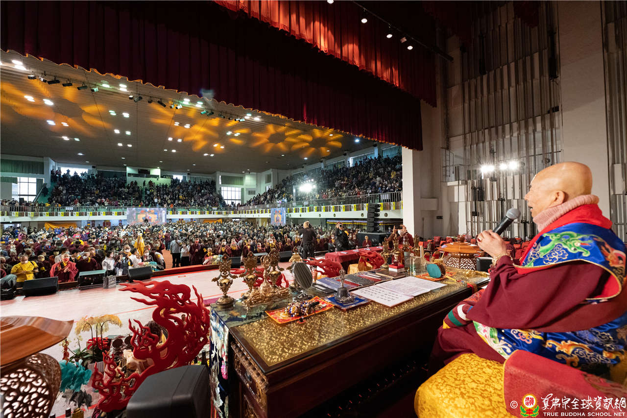 2023年元旦,人人歡喜迎接新一年的來臨。在這人人普慶的一天,台灣嘉義市真佛宗法華堂恭請蓮生法王到嘉義市立港坪運動中心體育館主持「五色不動明王息災增益敬愛除障超度大法會」,首傳「五色不動明王不共大法」。法會現場莊嚴殊勝,台上除了有巨幅的大日如來唐卡,更有金剛界曼荼羅及胎藏界曼荼法相圖。原來「不動明王」是八大明王首座,也是金胎兩部部主「大日如來」的變化身及教令輪。下午兩點,法會開始,大會迎師組恭迎蓮生法王入道場。