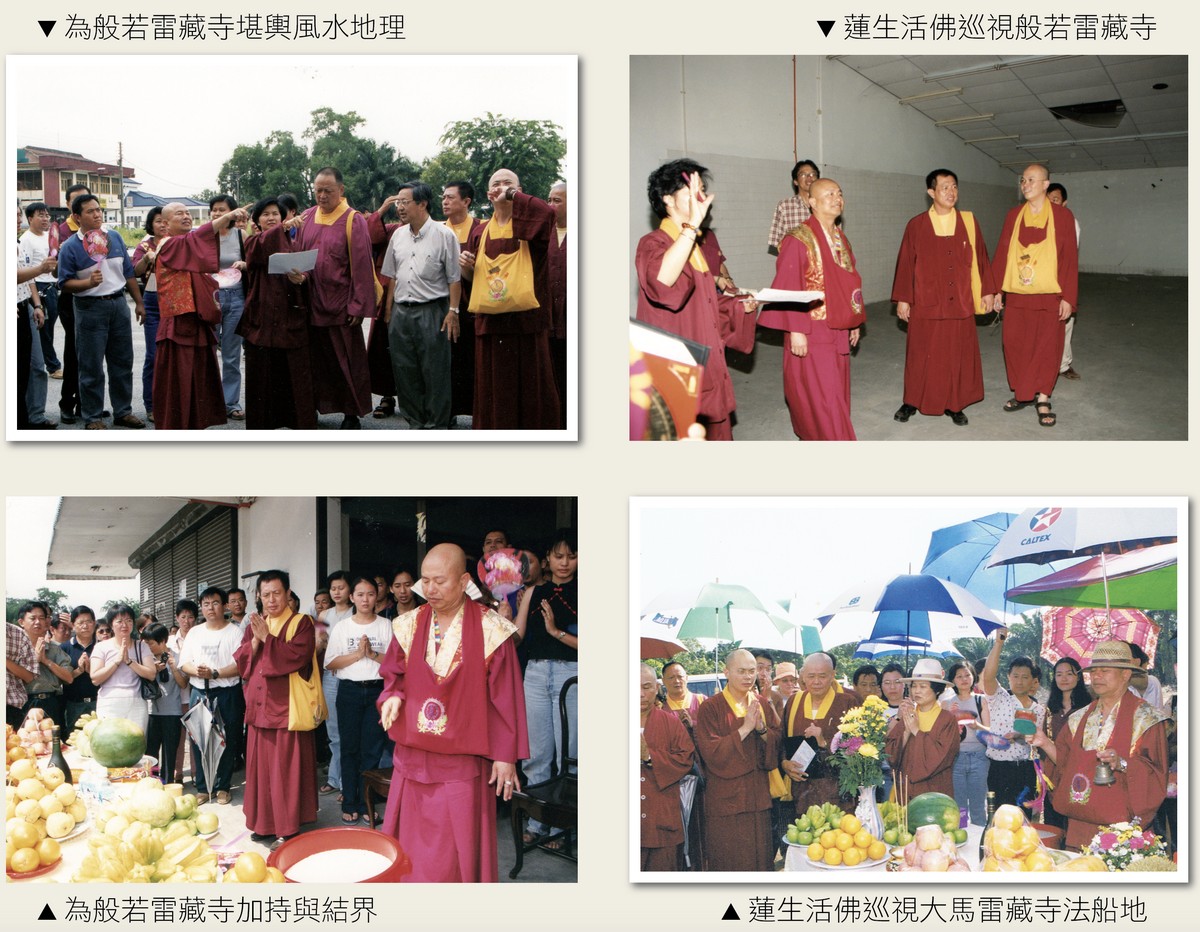 西元1999年,根本上師蒞臨大馬主持馬密總成立大典時,亦於8月16日前往雪蘭莪州中路6英里為“大馬雷藏寺”寺地勘查風水及拜祭地神,指該地之風水學名稱為“法船地”,然而該地建寺的因緣尚未成熟。爾後根本上師又往巴生池龍花園一座建築勘輿,認定此建築適合作為雷藏寺,並為建築主持“灑淨結界及供養地神儀式”。當時該建築是一座荒廢多年的超級市場,其業主願發心租借給“馬密總”作辦事處,然而在根本上師的囑咐下,“馬密總”即展開籌募,購置此建築物,並裝修為雷藏寺。