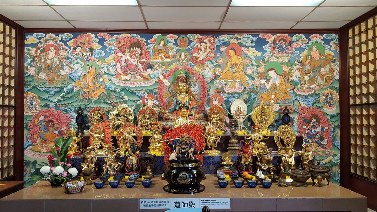 蓮師殿,是護法殿,亦是般若雷藏寺的特色,入口處為一座特製的大型蓮師寶冠,殿裡週邊供奉著千頂蓮師寶冠。殿內供奉著諸尊密教金剛護法,磁場非常強盛威猛。