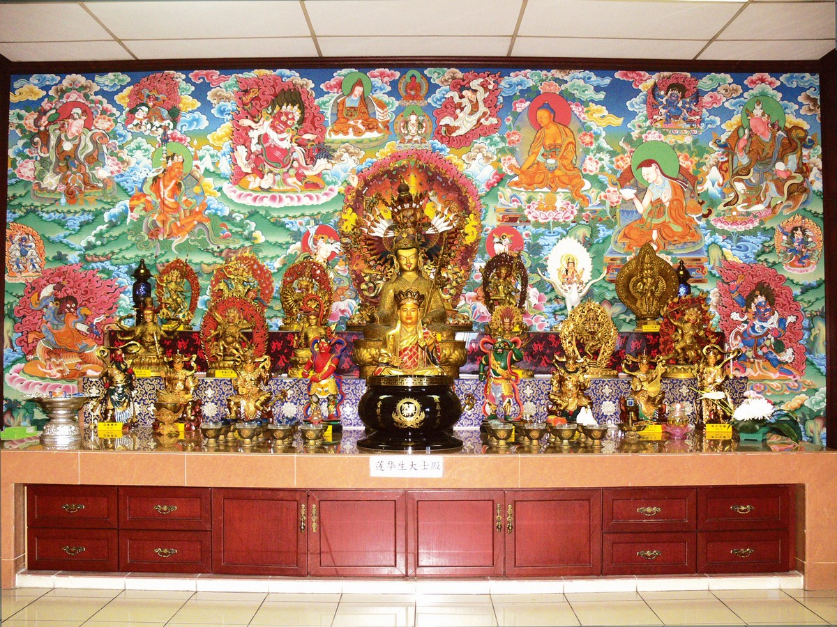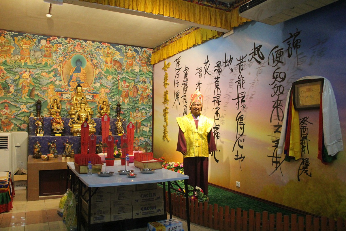 蓮花程祖上師特別訂製了與真人相同尺寸的根本上師蠟像,有站立的、有坐姿的,微妙微肖。壇城大殿中央,更有以金石材質做的根本上師金身,堪稱全《真佛宗》根本上師金身中之一絕!根本上師看了這些蠟像非常歡喜,特別與師母蓮香上師在金身旁合影。在參觀後,根本上師盛讚說:「寺內唐卡很多,道場亦佈置得很莊嚴。」祂亦建議:「道場外面,可用一般藏人天馬旗圍起來,窗子是黑色木框,外圍要有密教佛幔。」