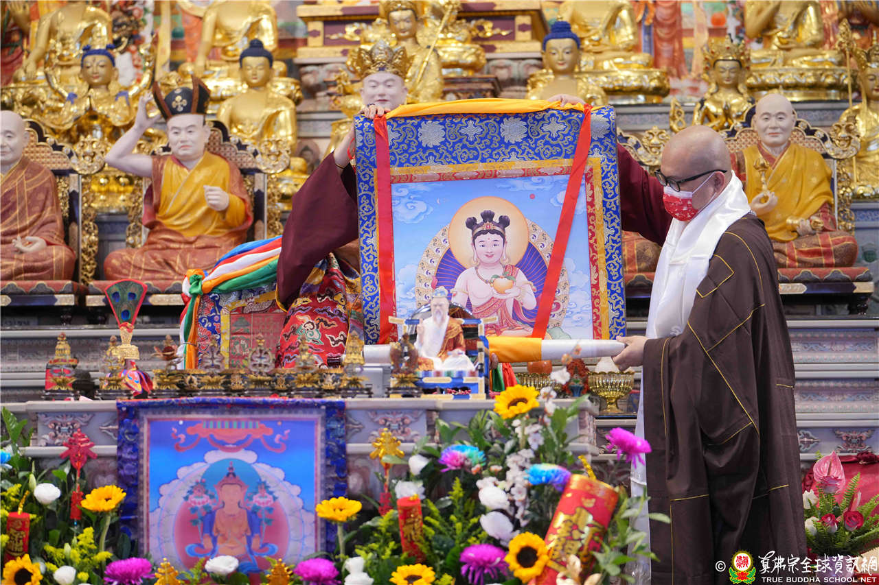 法王表示今日已經為台灣雷藏寺的淨化殿開光,殿裡供奉的金剛薩埵是消業本尊。大家在每年正月初一,可到淨化殿請上師、教授師或法師為自己做淨化,也就是「一掃煩惱清、二掃霉運去、三掃業障消除」。除了大年初一,平日遇到障礙、業障或健康及事業等種種問題,也可到台灣雷藏寺這裡求淨化。淨化後,就已全部重生,福分也會降臨。