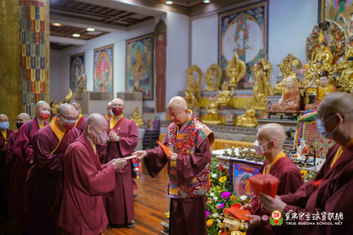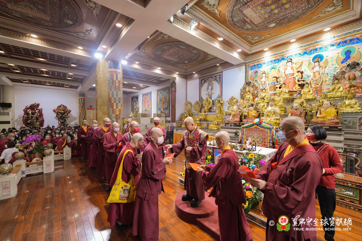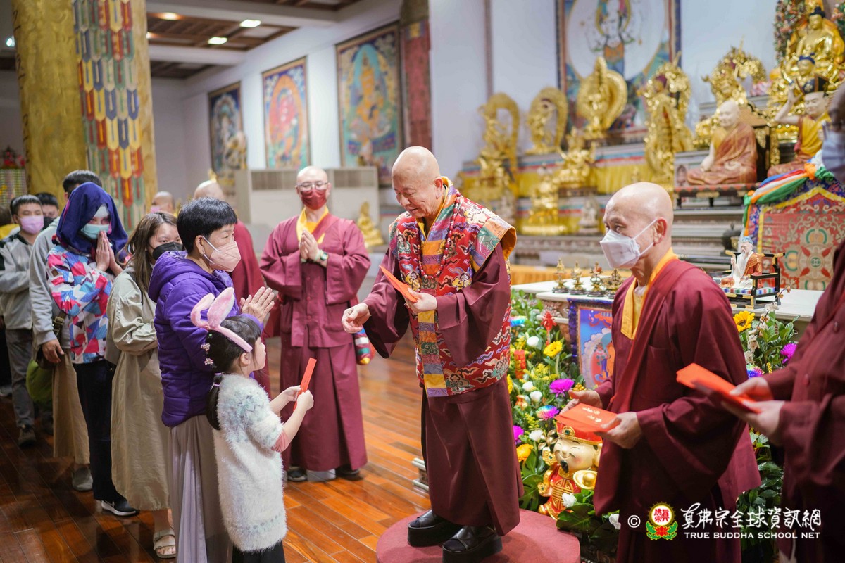 師母很衷心的說出心聲,大家能夠再見到師母,真是喜極而泣!最後師尊一一為大眾賜福紅包,相隔三年的一聚,今年的圍爐分外令人珍惜!