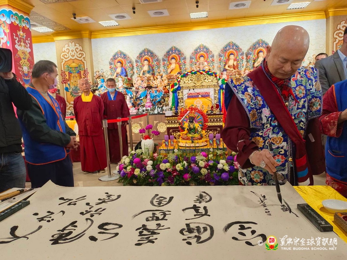 2023年1月29日上午 真佛宗根本傳承上師無上法王聖尊蓮生活佛已抵達大義雷藏寺出席開光剪綵儀式、為獅子石像點睛開光後賜墨寶 大法弘傳於南台 義理周遍存達空 在賜墨寶及試音後,法王繼續巡視大義雷藏寺,加持能摧壞度母點燈區、能摧壞大法會之延生位及往生位。 隨後法王為大義雷藏寺 佛像開光、上香、及主壇【能摧壞度母息災祈福增益敬愛除障超度大法會】