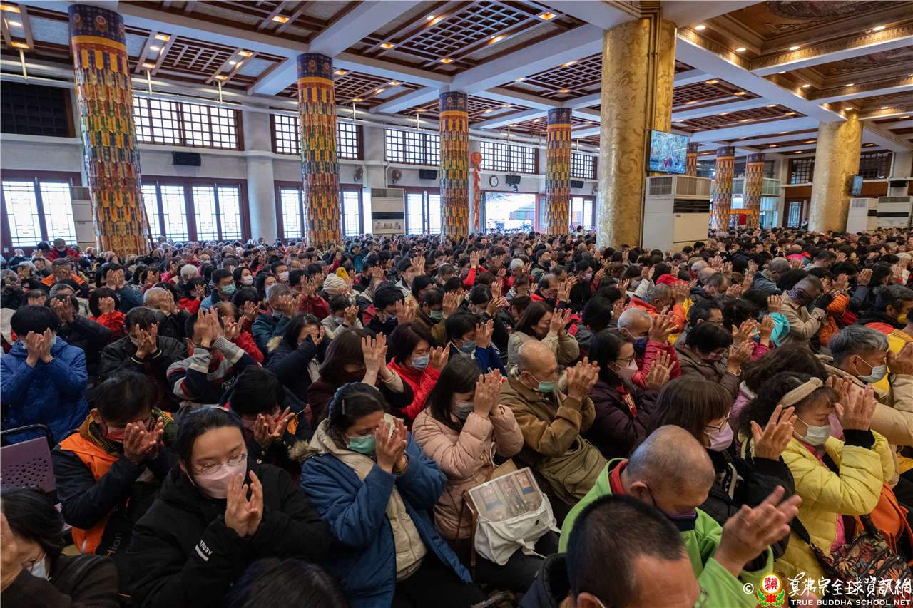 接著法王開示今天的勾財天女護摩法會,重點是三轉金剛勾之後再去勾,息災法可以把災難勾掉、增益法一勾就中獎、敬愛法勾心愛之人、勾老闆給你加薪升職、勾貴人,還可以把冤親債主勾到垃圾場焚化爐。勾財天女是阿彌陀佛心中所化,能把所有佛國最好的東西都勾到西方極樂世界裡來:七重羅網、七重寶樹、七寶池八功德水、大如車輪的蓮花等等,因此阿彌陀佛的西方極樂世界是十方諸佛所共同讚歎的淨土,所有的佛都伸出廣長舌相,讚歎極樂世界的莊嚴、殊勝、微妙和不可思議。法王說,真佛宗所有的同門將來都可以到西方極樂世界,不能去的用金剛勾勾去。