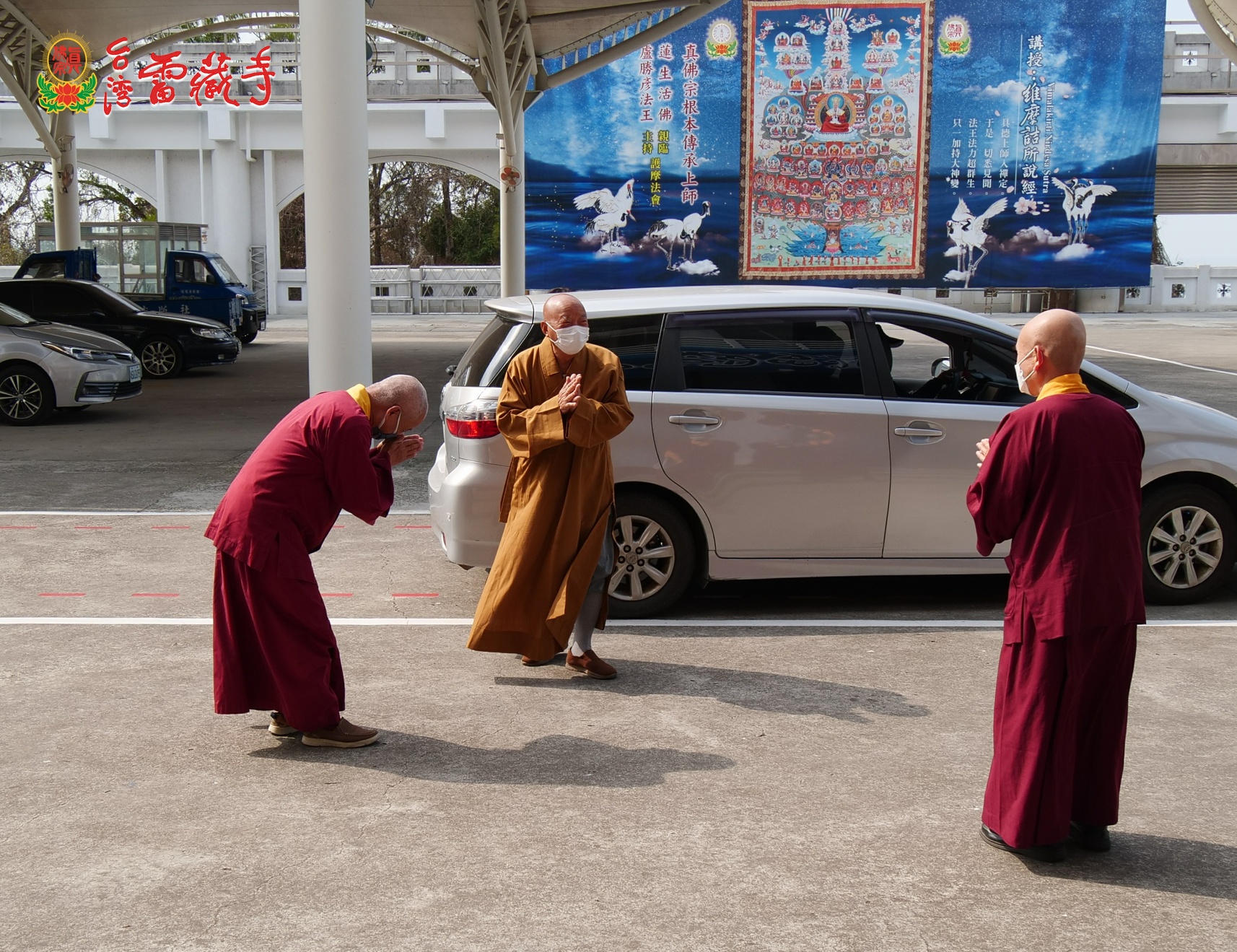 台灣雷藏寺四大執事,住持釋蓮哲上師、副住持釋蓮栽上師、監院釋蓮歐上師、密教總會理事長釋蓮東上師,以及密總常務理事寶悅同修會釋蓮余上師,與台灣雷藏寺中眾法師、同門共約十五人許,一同熱情地歡迎佛光山代表團的到來。