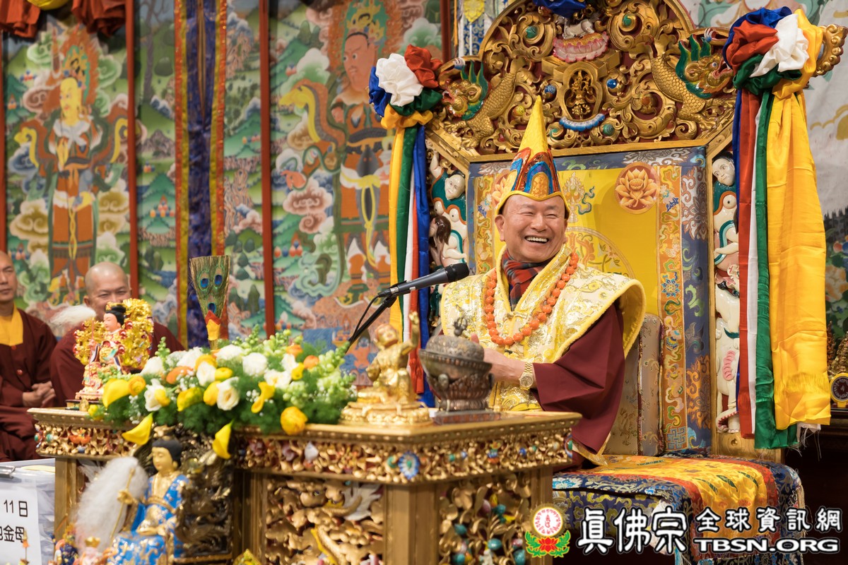 最後,大家齊聚大殿,獻上各種才藝表演供佛,每個節目都帶著深深的祝福及盼望師尊早日回來西雅圖之心意,最後壓抽,法王聖尊演化金剛棍賜福及摩頂加持四眾弟子,為美好的一天畫上圓滿的句號。