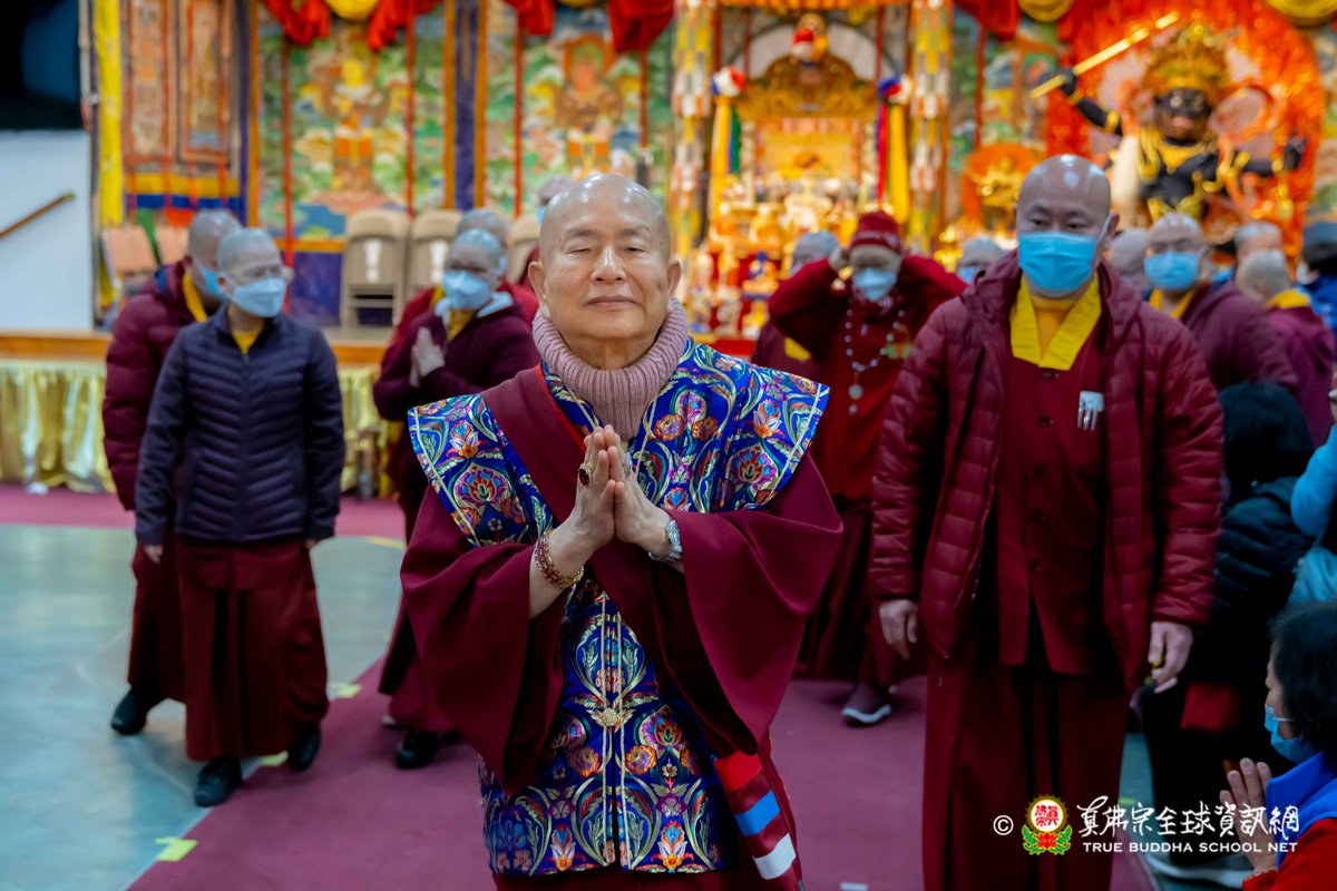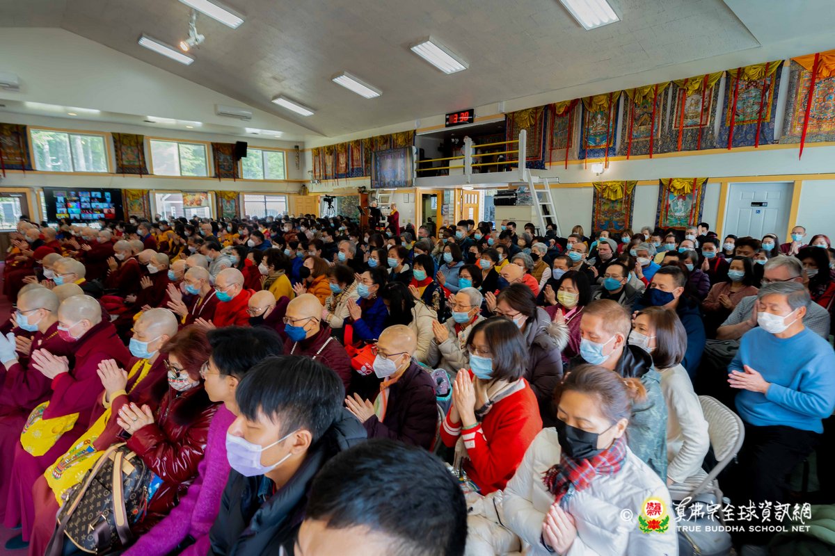 2023年3月26日,西雅圖彩虹雷藏寺恭請蓮生法王主壇殊勝的五色不動明王護摩法會。護摩結束後,法王預告4月2日下午3點是清明節地藏王菩薩護摩法會。法王講述地藏王菩薩右手持錫杖,左手捧摩尼寶珠,座騎為諦聽。地藏王菩薩也是法王的本尊,向大家示範其手印及咒音後,法王表示地藏王菩薩是八大菩薩中唯一顯聲聞相的菩薩,也就是出家相。