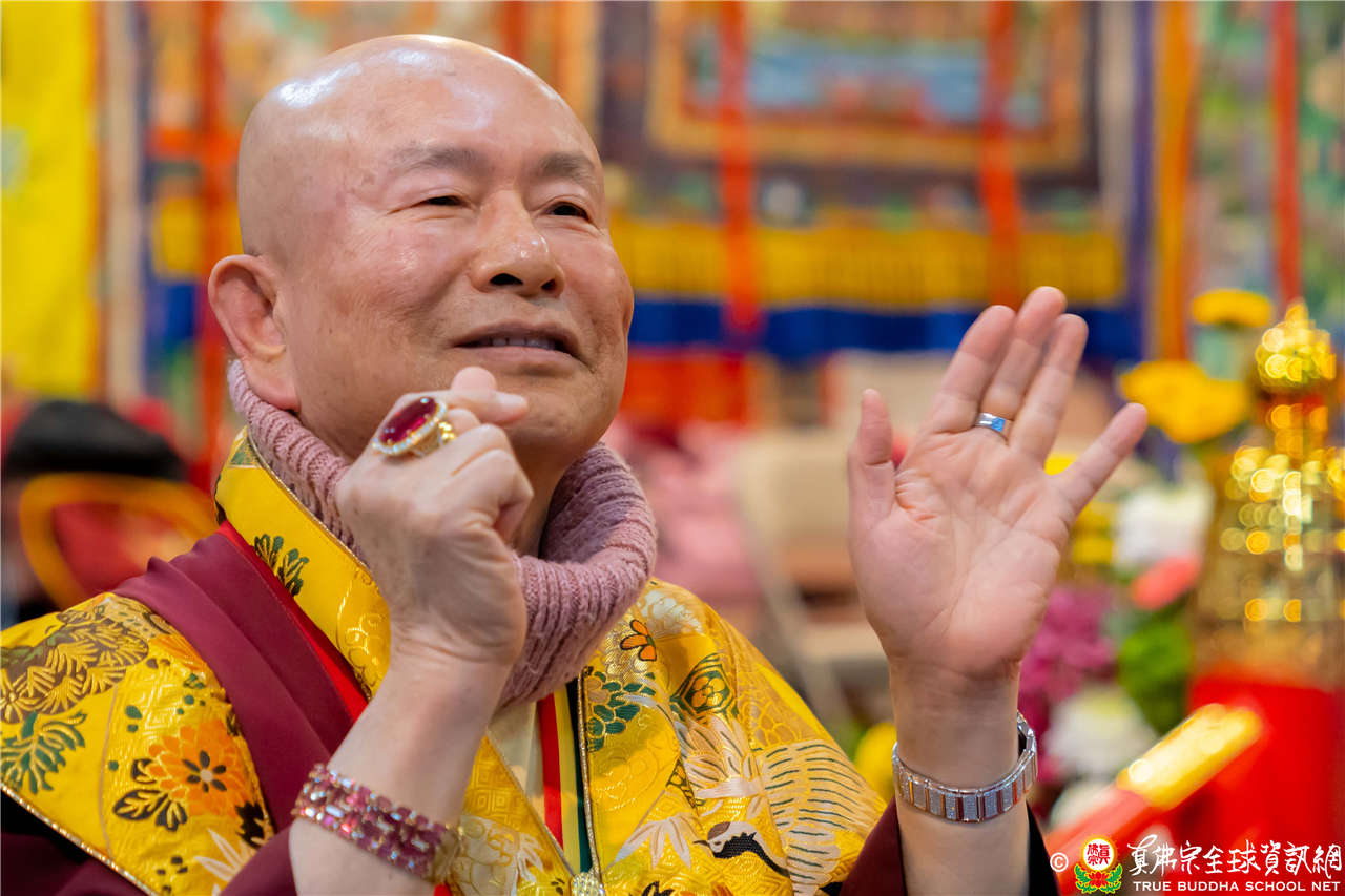 2023年4月2日,西雅圖彩虹雷藏寺恭請聖尊蓮生法王,主持南摩紅地藏王菩薩護摩法會。法王首先向大家預告,下週是尊勝佛母護摩法會。尊勝佛母的法力相當於準提佛母,無論是印度、西藏、中國,都屬於大佛母,且千變萬化。尊勝佛母有一字咒:「嗡。普隆」,力量很大。圓滿咒「嗡。部林」是普方上師所傳,其實也就是「嗡。普隆」,二者是同樣的,是圓滿之意。