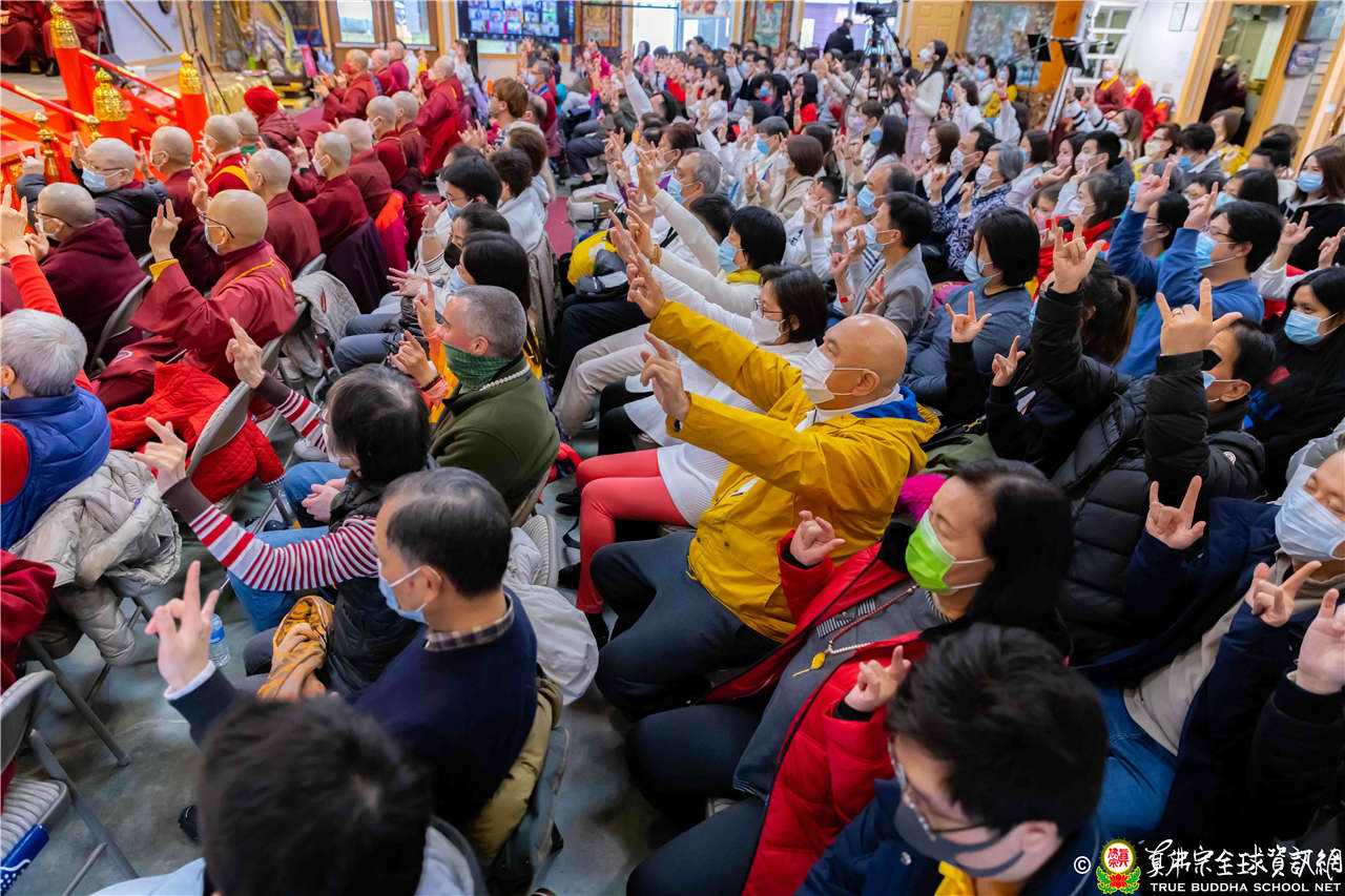 在護摩迴向時,司儀宣佈世界真佛宗宗務委員於4月7日至4月8日率全球道場暨弘法人員在雲端共同持誦尊勝佛母心咒,祈望「尊勝佛母」加持守護迴向根本上師聖尊蓮生活佛除病消災、請佛長壽住世,以無量威德的法力饒益眾生。法王感動表示今日「尊勝佛母」下降力量非常大。