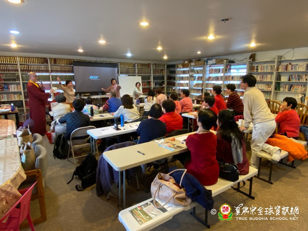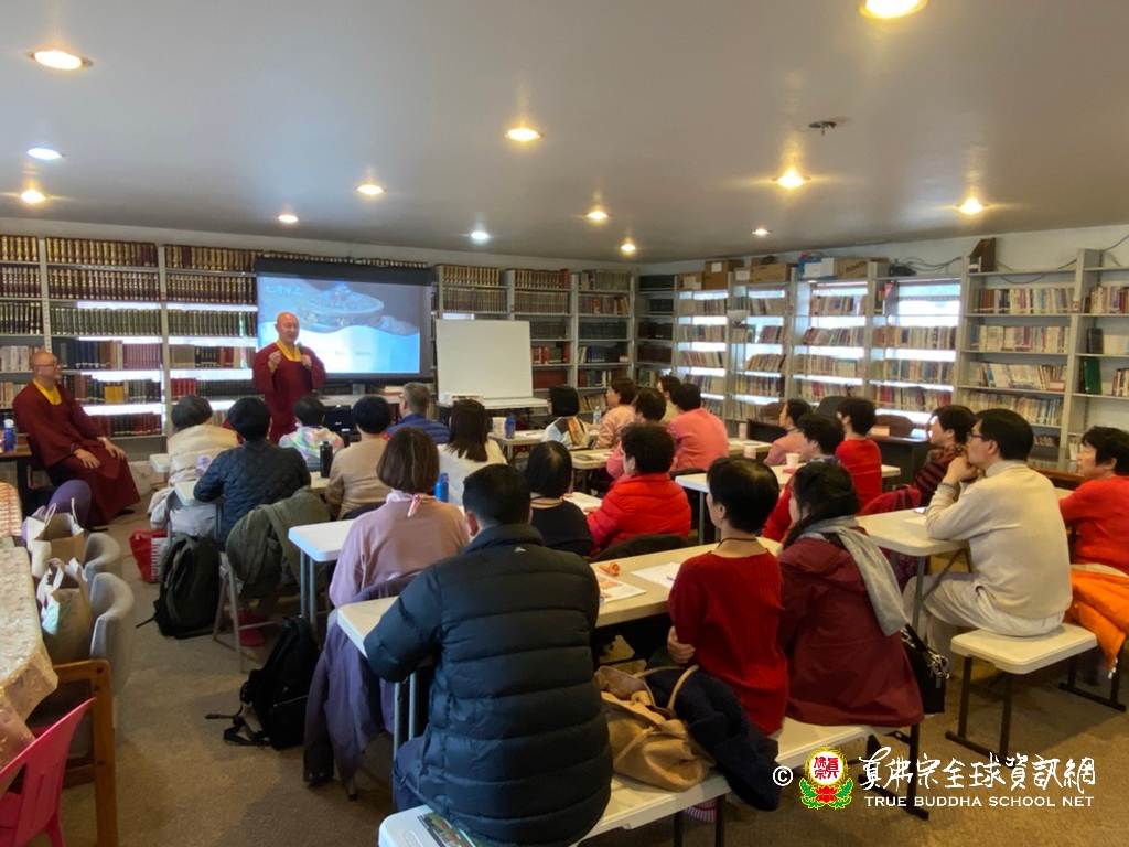 接著,長老蓮僧上師擔起重頭戲,講解如何成為卓越的真佛道場。長老以擔任加州尊勝雷藏寺住持數十年的歷練,以及近年參與宗務行政革新的經驗,配合宗派架設的新網站,帶引聽眾深入探討宗派的運作和方向、許多道場面臨的問題,以及如何增加道場攝召與教化眾生的能量。長老流利的廣東話與講課技巧,讓眾人不但能意會聽懂,更拉近彼此間的距離。