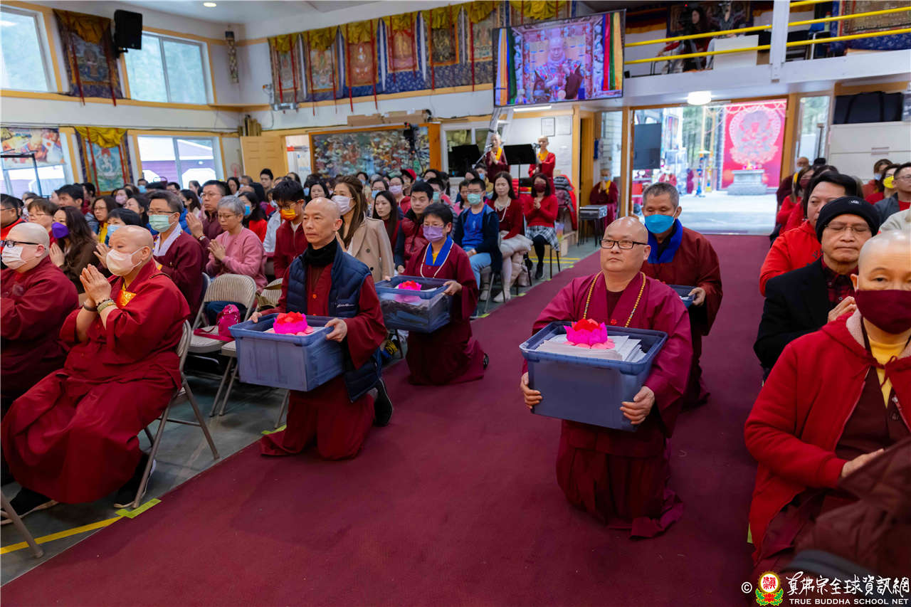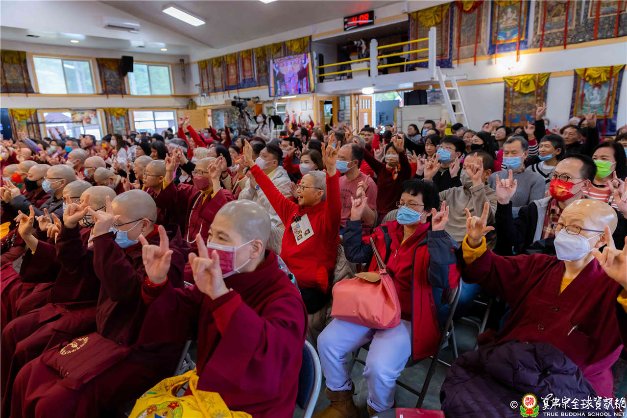 法會結束前,線上弟子們不斷恭祝法王佛體安康,請佛住世,法王也回予加持祝福,並賜予現場弟子「愛染明王法」灌頂,弟子們誠摯地感恩法王開示,法會圓滿結束。