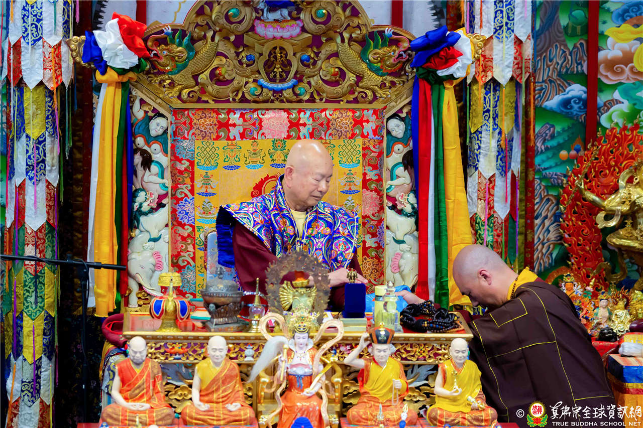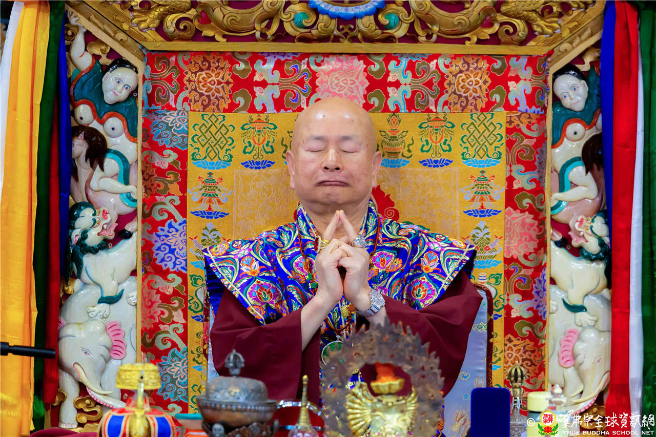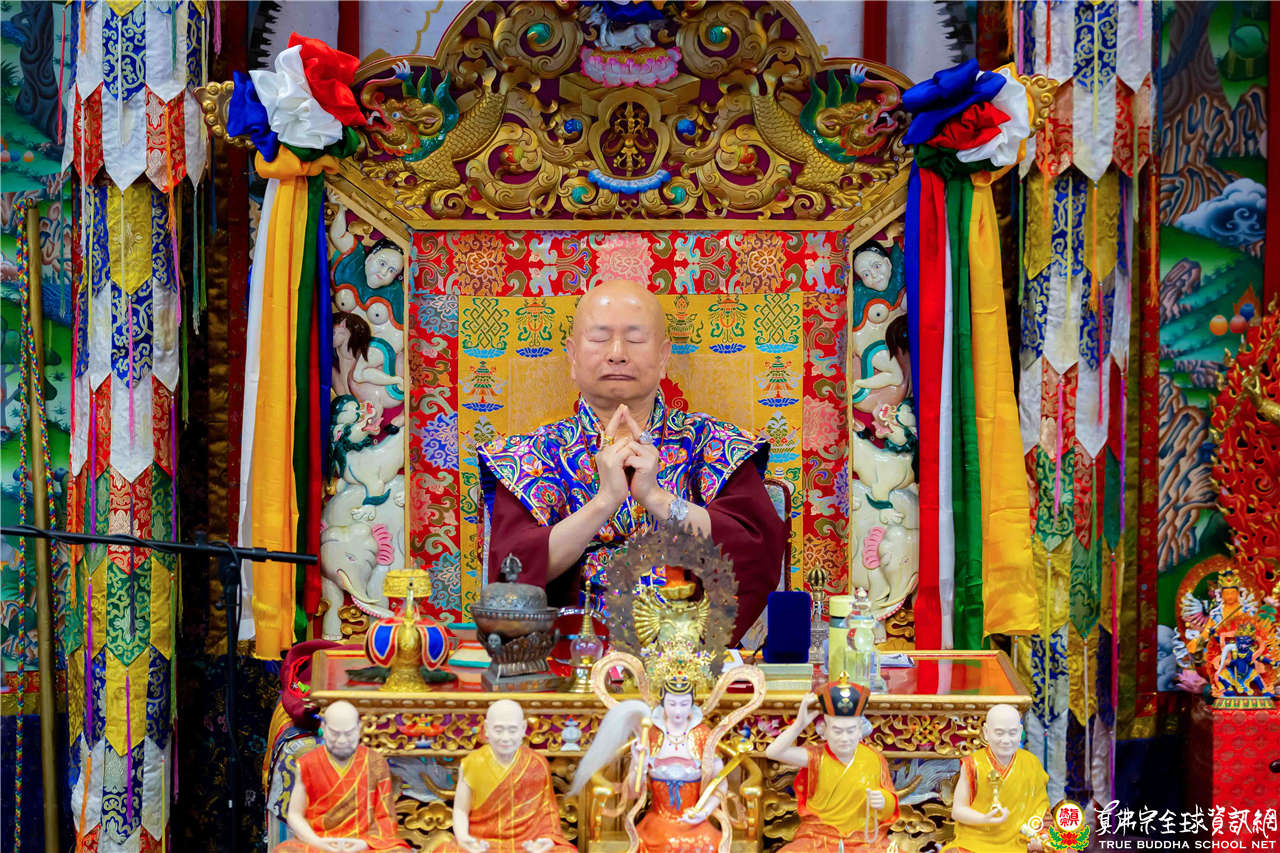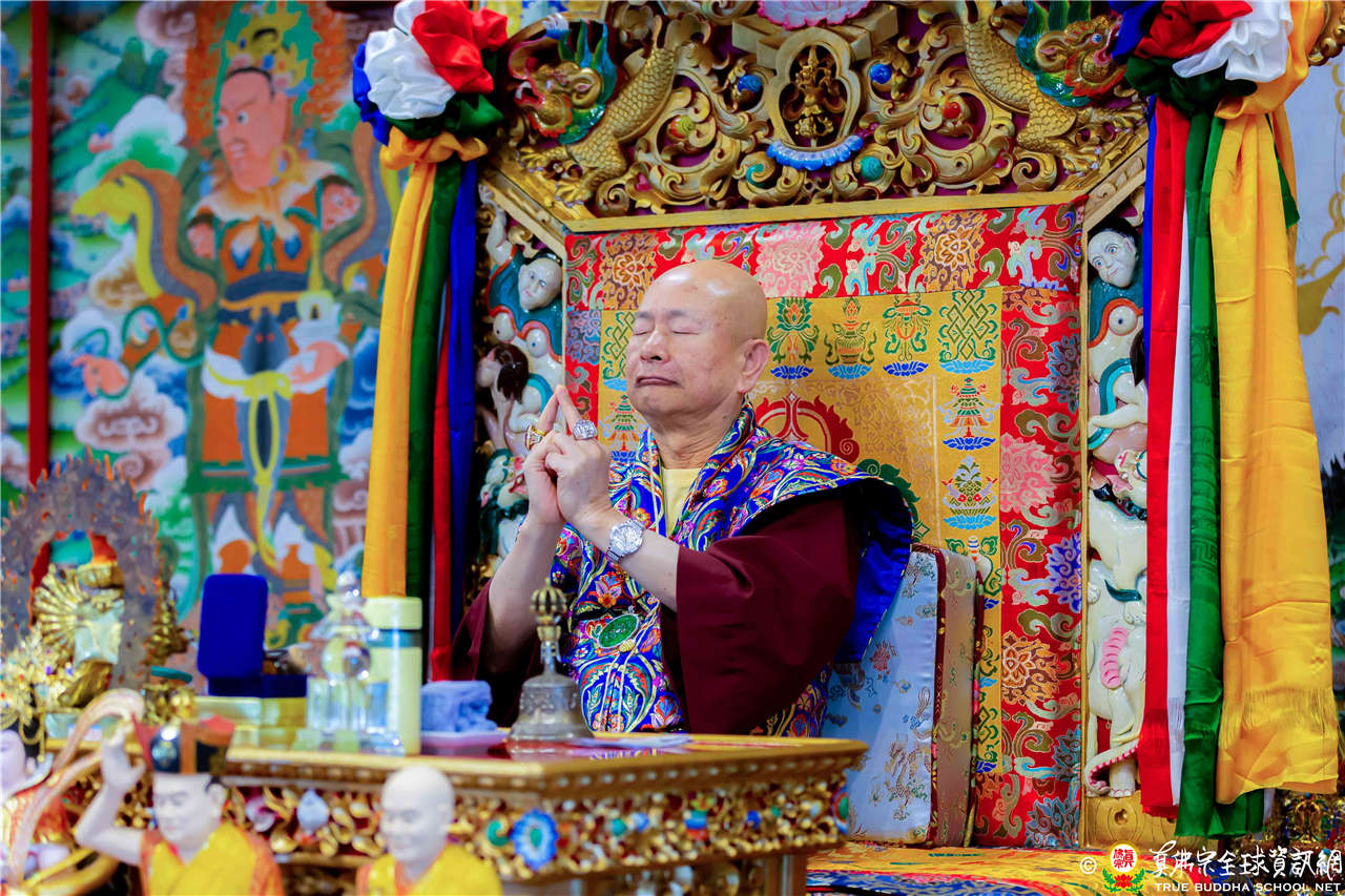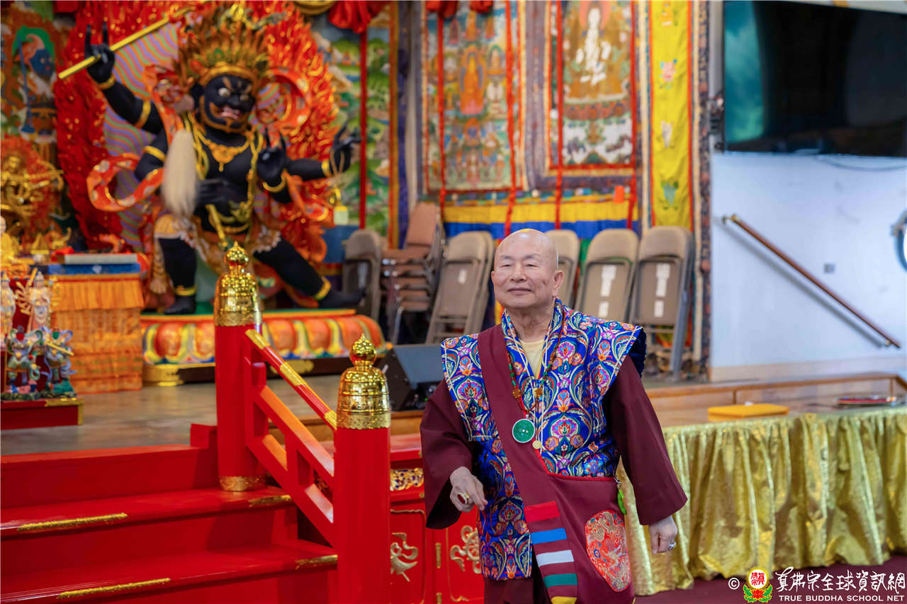 法王開示今日護摩主尊大威德金剛非常重要,是宗喀巴大師的護法,也是法王的護法。彩虹雷藏寺金剛明王殿中央的一尊也是大威德金剛。祂的威力無窮,可降服諸魔,亦稱降閻魔尊。祂是阿彌陀佛、文殊師利菩薩、閻魔法王三身合一的大威德金剛,可降服死魔、煩惱魔、天子魔、病魔、五蘊魔。只要祂一出現,任何鬼怪皆無法抵擋,是怖畏金剛。大威德金剛在護法中威力最大,法王首次相應時在真佛密苑,祂出現時,四大海水全部翻滾。