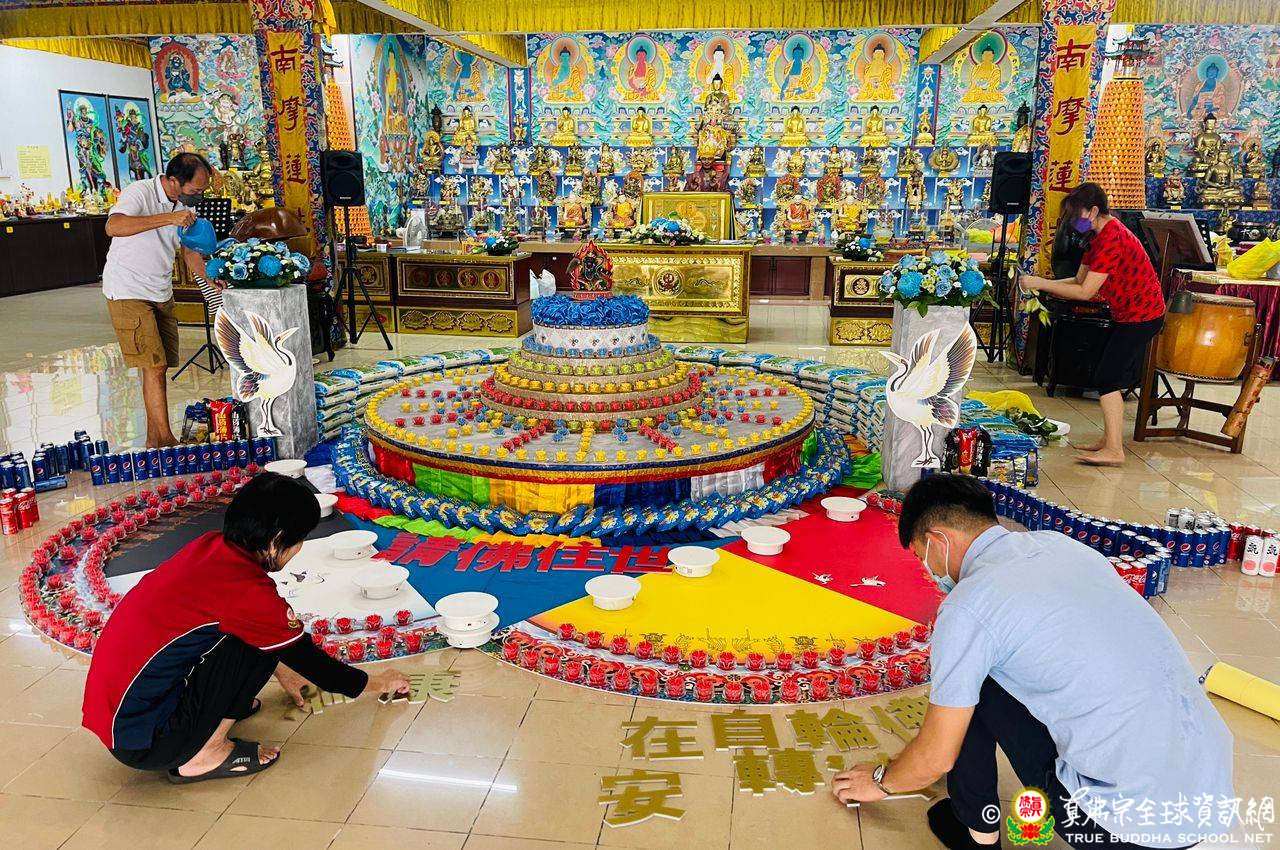 2023佛誕請佛住世薈供/水供法會花絮報導 世界各地道場響應宗委會號召2023年6月24日全球雲端連線請佛住世薈供/水供法會。 般若雷藏寺正在佈置會場以及薈供壇城供品。