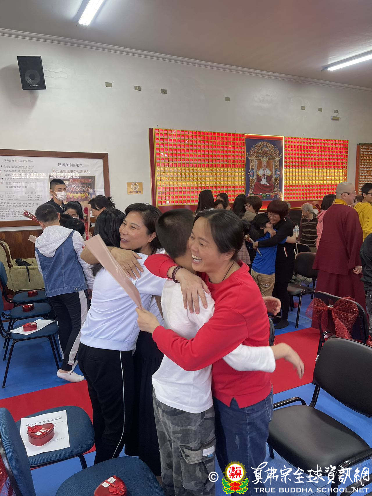 首先是座位安排,每一位母親和孩子面對面坐著。然後蓮訶上師帶領每一位孩子上香,為自己的母親祈福,孩子們很虔誠的一起念:「請加持我眼前的母親身體健康,平安快樂!」很多母親看著孩子們虔誠的表情,都露出了欣慰的笑容,甚至已經感動到流淚了。