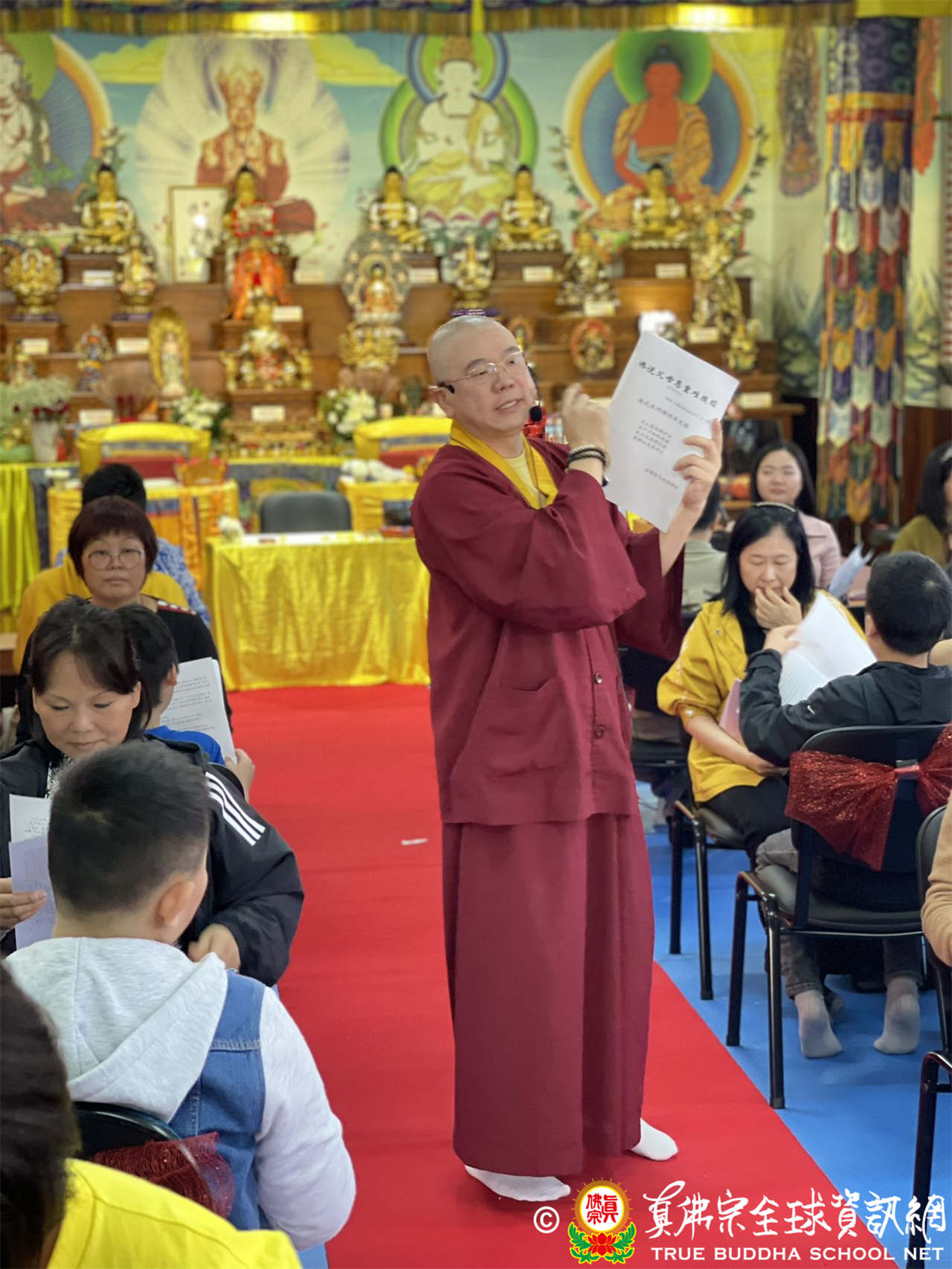 首先蓮訶上師帶領真青們一起做運動,教導大家如何禮佛,並且把大家帶到壇城前,近距離接觸到佛菩薩,講解什麼是“佛、菩薩、金剛護法”。真青們聽得津津有味,並且和蓮訶上師互動踴躍。