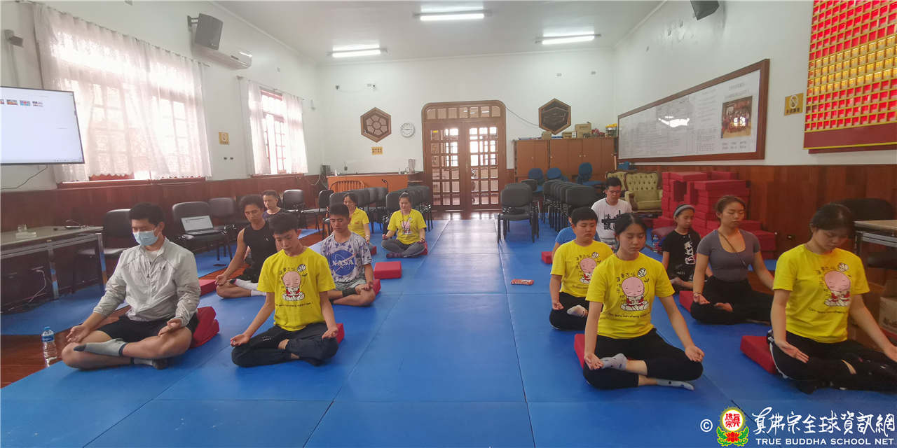 課程設計動靜結合,有運動、遊戲,還有佛學知識、禪定練習。蓮訶上師親自指導大家禪定的姿勢,帶領大家7分鐘的數息練習。只見在場每一位真青都很認真的去感受和調整自己的呼吸,練習專注力,順利完成了人生第一次的禪定體驗。