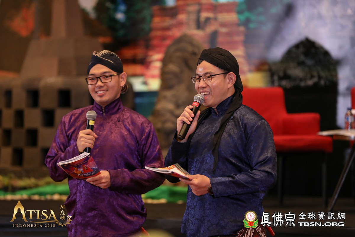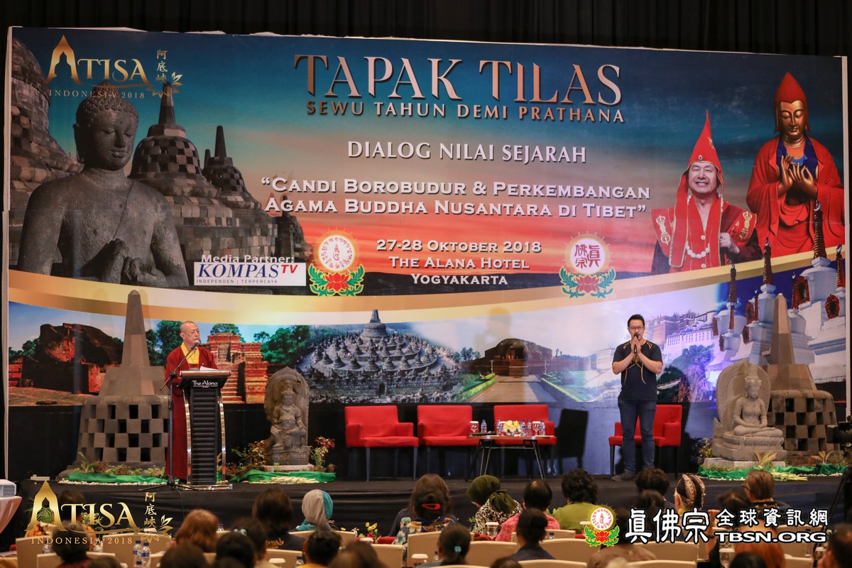是日座談會共有三位主講者,由印尼旅遊局前局長,婆羅浮圖專家考古學家 哈利.悟恩多羅.特拉查教授,以「千年尋根阿底峽:一步一腳印」首先主講。第二位主講者是Gadjah Mada大學,考古學系教授 Niken Wirasanti女士,為在座與會眾等,帶來「三塔一體:門督(Candi Mendut)、巴翁(Candi Pawon)和婆羅浮圖(Candi Borobudur)」的主題演說。第三位主講者,是印尼考古學界國寶 努爾哈提‧嘛格薩利榮譽教授。教授連續兩天為到場參與的大眾主講,與阿底峽尊者相關的考古研究成果,本日所講主題是「婆羅浮屠佛塔上雕刻的意義」。