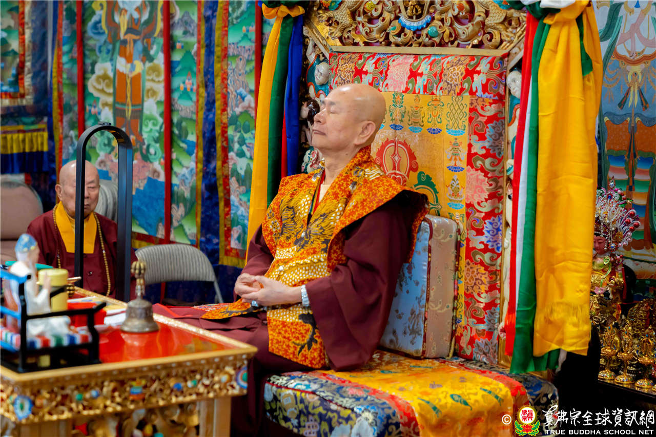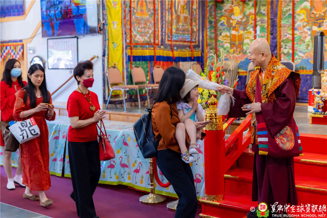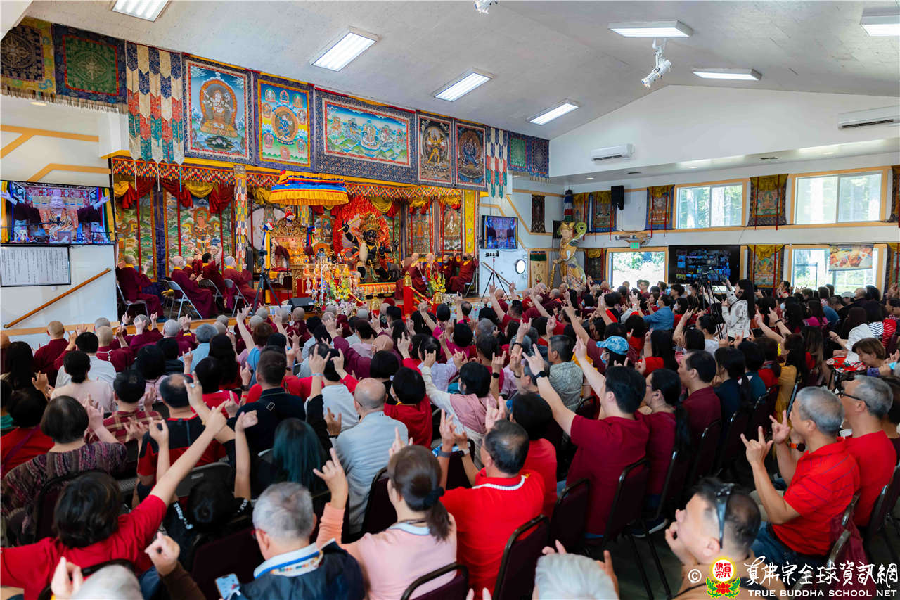 2023年6月25日,西雅圖彩虹雷藏寺恭請聖尊蓮生法王主壇長壽佛護摩法會。法王預告下個星期日護摩法會主尊為滿願童子,接著向大家講解滿願童子的咒語和手印。