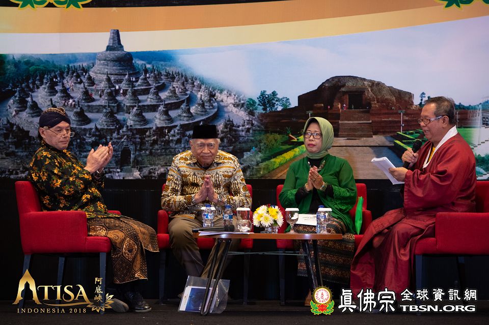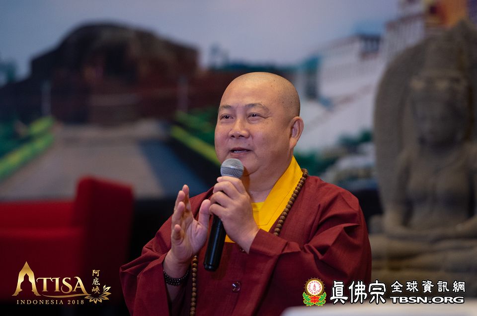 蓮飛上師也應邀致詞,提到婆羅浮圖殊勝的歷史定位,也向貴賓們介紹聖尊蓮生活佛昔日蒞臨印尼的盛況。聖尊的多篇文章之中,提到了阿底峽祖師,上師並且與大家分享師尊文章「阿底峽事師十二年」。