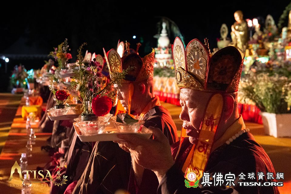 之前,宗委會處長與上師們共7位應邀為現場婆羅浮圖歷史性的珍貴佛像金身開光,象徵根本傳承法流,藉著本宗上師的代師傳法,也發光於當地。