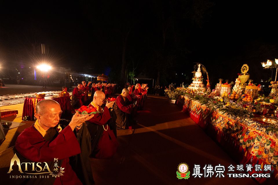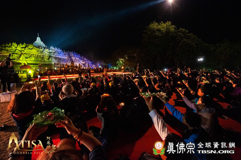 2018年10月28晚上,眾等齊聚世界七大奇景之一的「婆羅浮圖」佛塔前,由蓮僧上師主壇千手千眼觀音護摩。