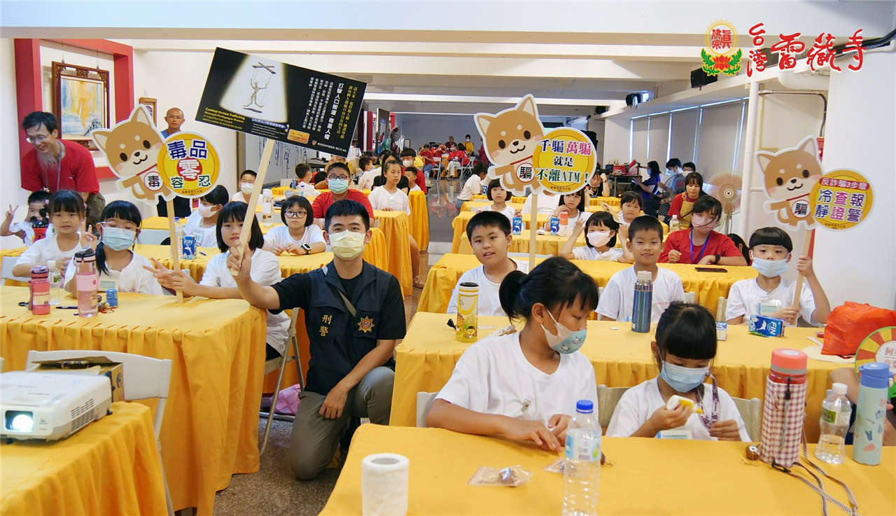 大夥兒正開心的互相分享自己的作品時,忽然幾位警員魚貫的走進來...原來是草屯分局犯防宣導偵查隊及草屯派出所為了關愛青少年,特來作宣導,經過幾位警員通力合作,運用圖片,舉牌,小問答,贈送實用小禮物..雖然此次樂活營有幾位年齡偏小,在聽到大哥哥大姐姐們的問答之後,似乎也能理解一點。可見平易近人的宣傳,確有其必要。