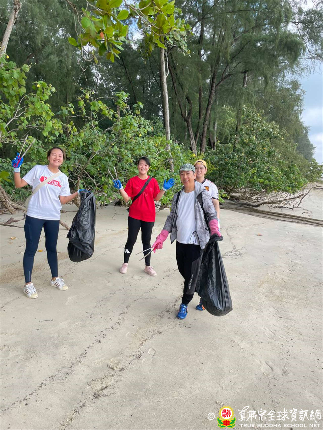 當天大家聚集在科尼島海灘,活動通知中亦有邀請青年團的父母家人朋友一同前來,參與這項有意義的活動。在青年團的號召下,出席者包括教授師、助教、同門及宗外青年約有30位,同心偕手完成海灘清理活動。