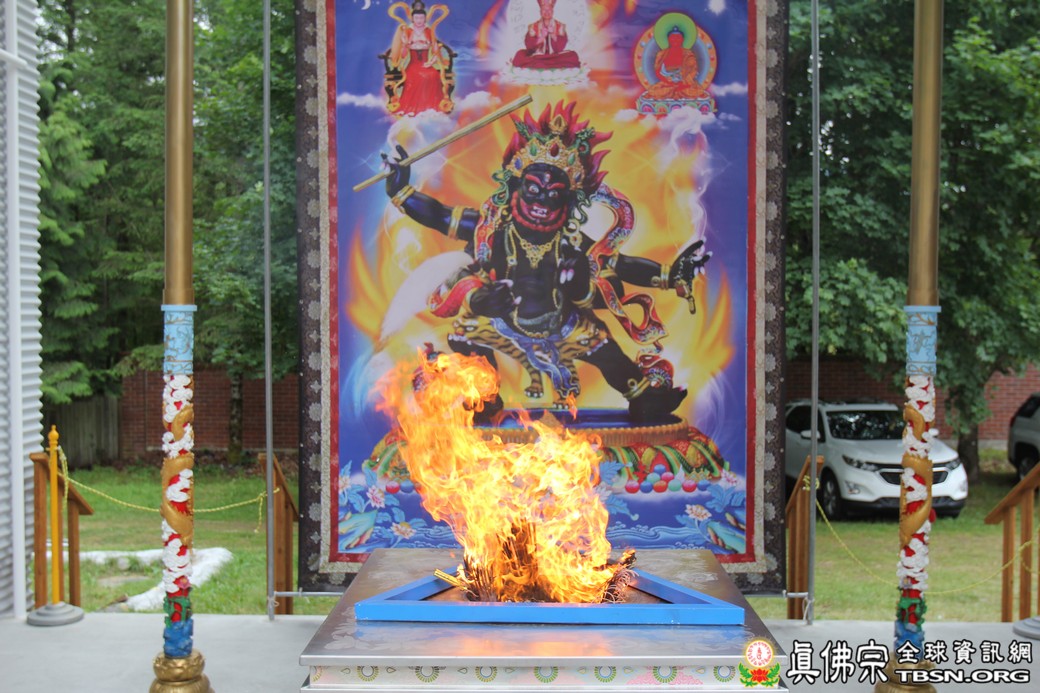 2019年6月23日下午,美國西雅圖彩虹雷藏寺恭請根本上師蓮生活佛盧勝彥主壇大力金剛護摩大法會。是日,當法王走到大力金剛的唐卡前時,居然發現唐卡裡還藏著兩位空行母,右邊是忿怒母、左邊是金剛瑜伽母,「今天大力金剛的護摩法會,還有兩位空行母跟隨下降,非常殊勝。」
