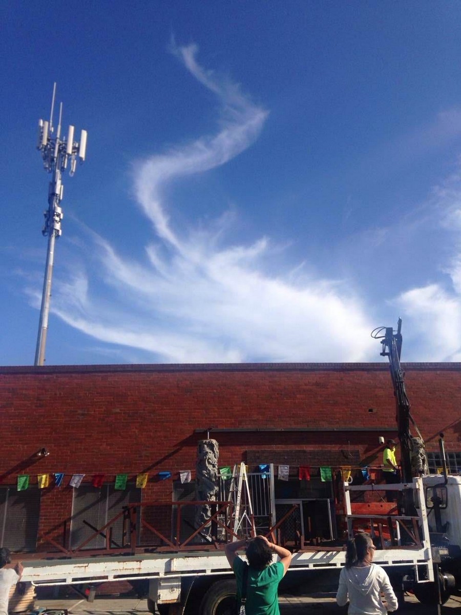 由於根本上師的大加持,善明同修會在2011年購置新道場並搬遷到現址 10 Stafford street, Huntingdale, Vic 3166,Australia。香港的大功德主贈送一對大青石龍柱,於是便在柱底埋下 師佛加持過的龍銀。在豎立門前龍柱時,本來是朗朗無雲晴空,突然泛起一片飛龍下降的祥雲,朝向善明同修會,同門莫不皆大讚歎,感恩 師佛諸佛菩薩金剛護法諸天龍眾的護佑,乃龍天降臨道場之吉兆。